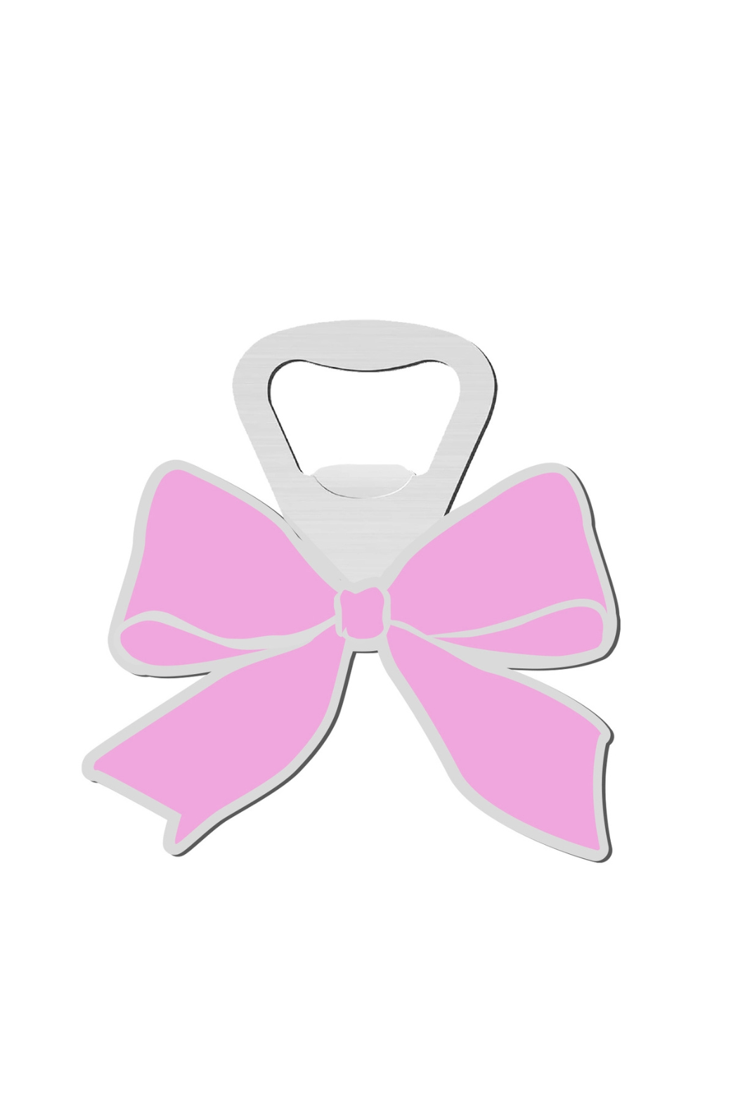 Silver metal with a pink bow design. Stylish addition to the bar accessories.
