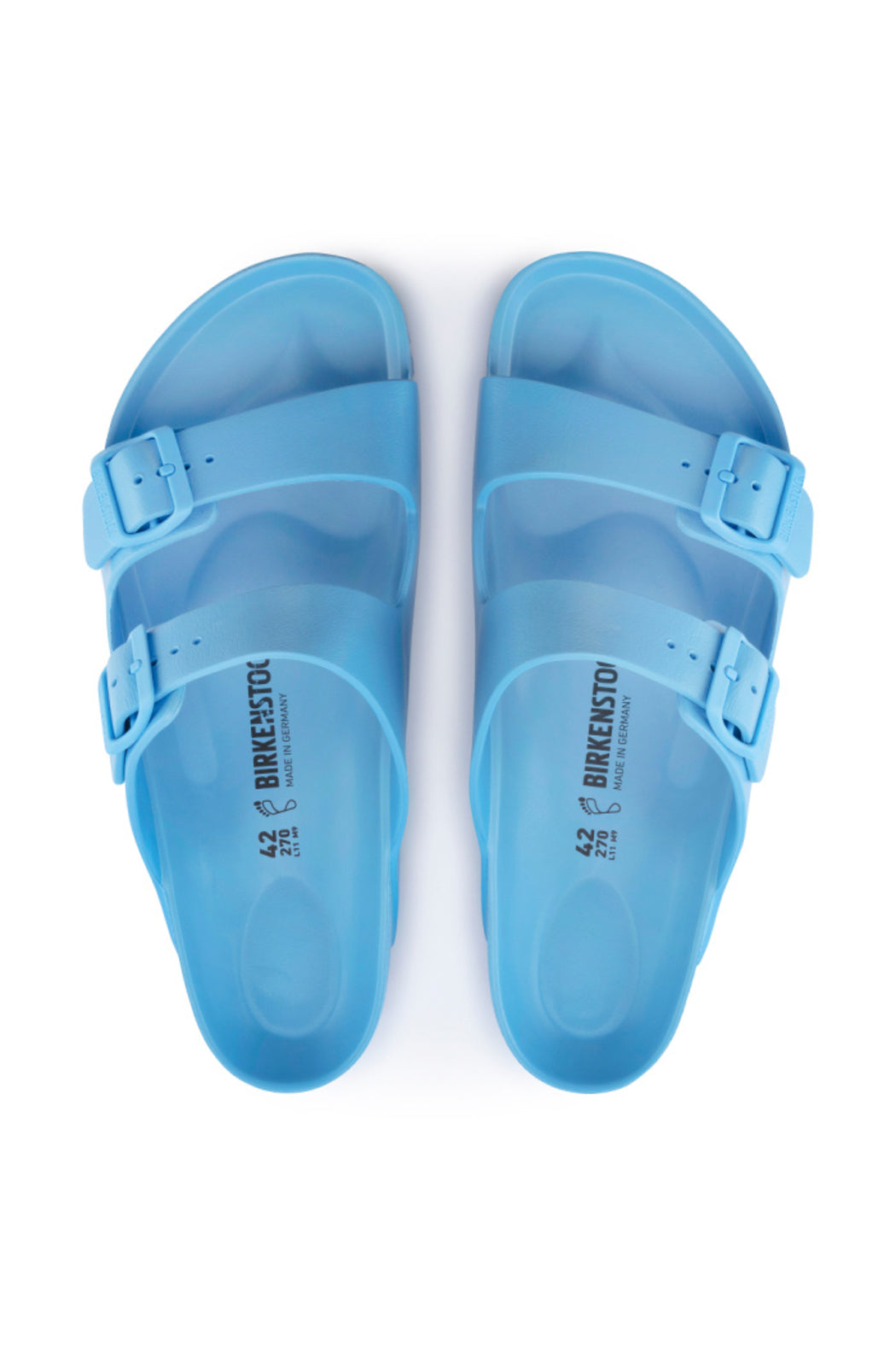 The legendary two-strap design from BIRKENSTOCK - the Arizona. Modeled on the cork original, this sandal is made from ultra lightweight and highly flexible EVA. These sandals are shock absorbing, waterproof, and skin-friendly. Wear them at the beach, in the garden, or around the gym and after workouts. It's the perfect addition to your classic BIRKENSTOCK sandals.