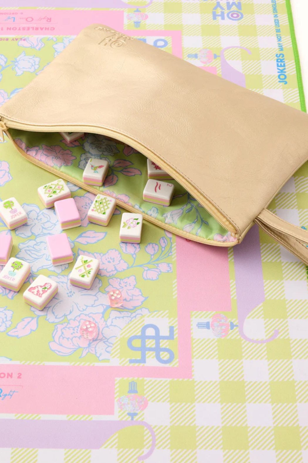 Pop the bubbly and let your style sparkle with the Champagne Bloom Tile Bag! This bag is the epitome of girly glam, with a dazzling metallic gold exterior that shines as bright as your personality. But wait—there’s more! Open it up to reveal a delightful surprise: a pink and green floral pattern that’s as fresh and fun as a garden party in full bloom. This bag isn’t just a pretty face; it’s the perfect companion for your Garden Party Mat, keeping your tiles safe and chic wherever you go. Whether you’re playing mahjong with friends or just want to add a touch of luxury to your day, the Champagne Bloom Tile Bag is the ultimate in style and sophistication, with a playful twist!