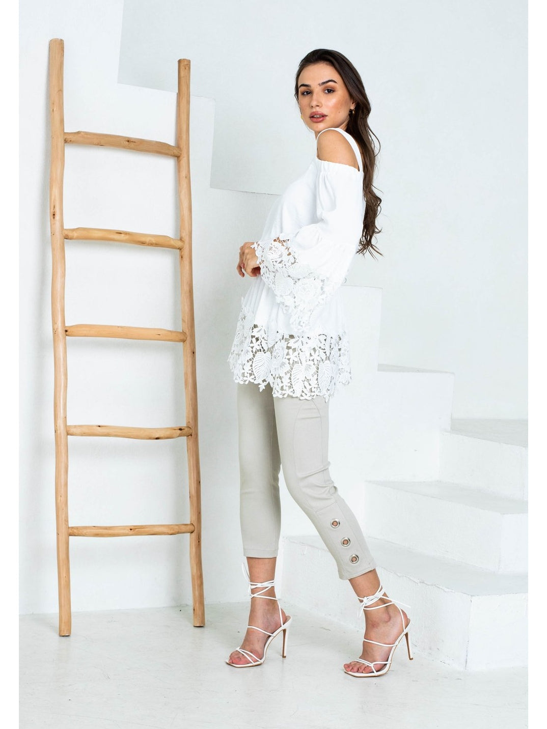 The Aveline Grommet Capri Pants by Artex Fashions feature lightweight stretch fabric, masterfully placed panels to slim and flatter, and convenient pull on styling. For a unique, stylish touch, these pants feature 1" grommets along the ankle. Get the perfect fit and a fashionable look with the Aveline Grommet Capri Pants.