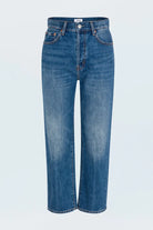 Our best-selling everyday denim. Cassie Crop sits as a super high rise with a clean, composed straight-leg silhouette and modern cropped 26" inseam. Classic button-fly closure adds timeless appeal while the cropped ankle hem feels perfectly now. Crafted from our premium rigid non-stretch denim that offers an expert fit and holds its shape wear after wear. Fairview brings timeless sophistication with its medium blue wash and vintage-inspired highs and lows.