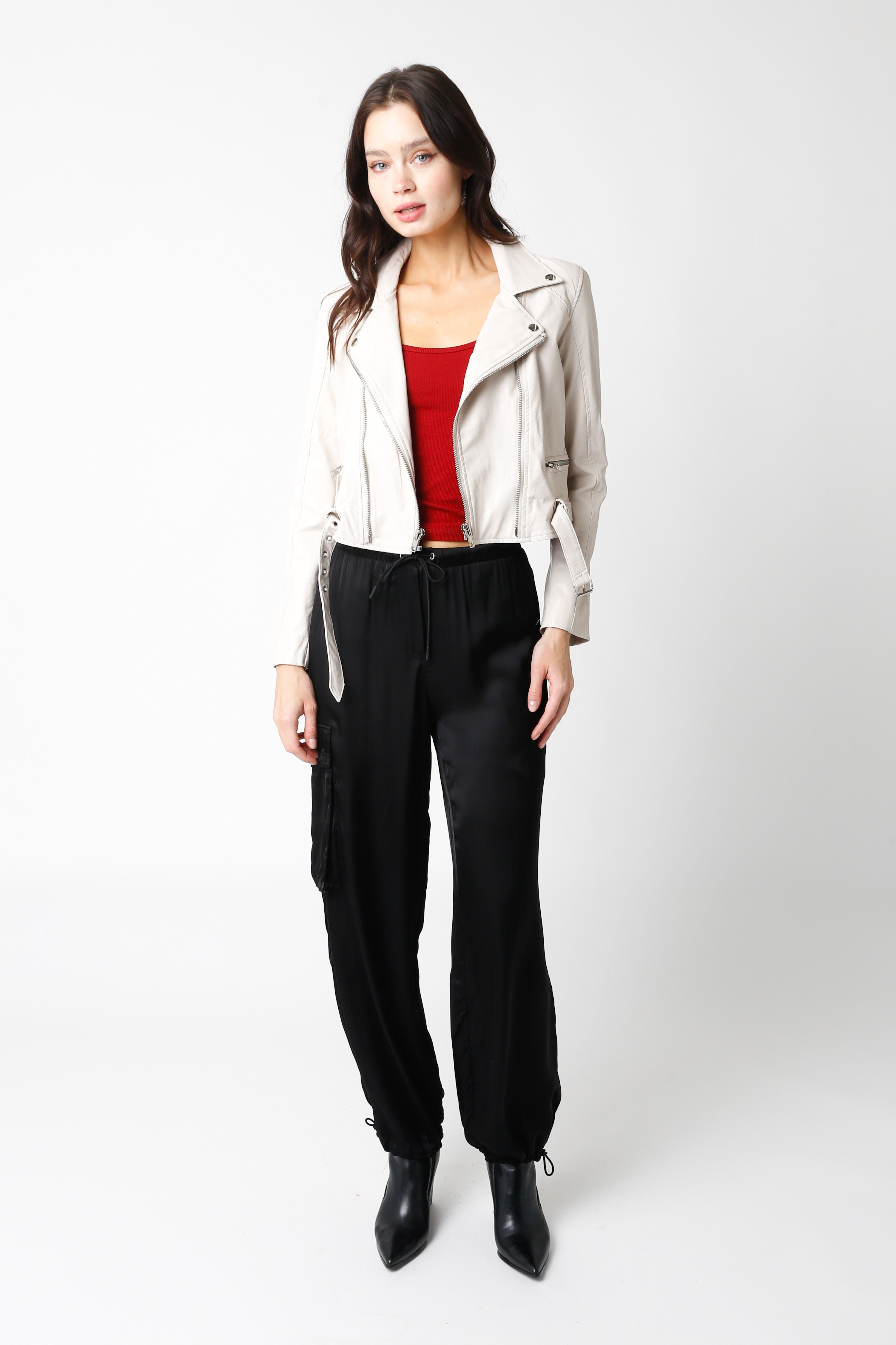 Super Comfy Soft Silky Feel Dressy Cargo Pants with Adjustable bottom Bungee. Wear these wide leg or not! Looks great both ways