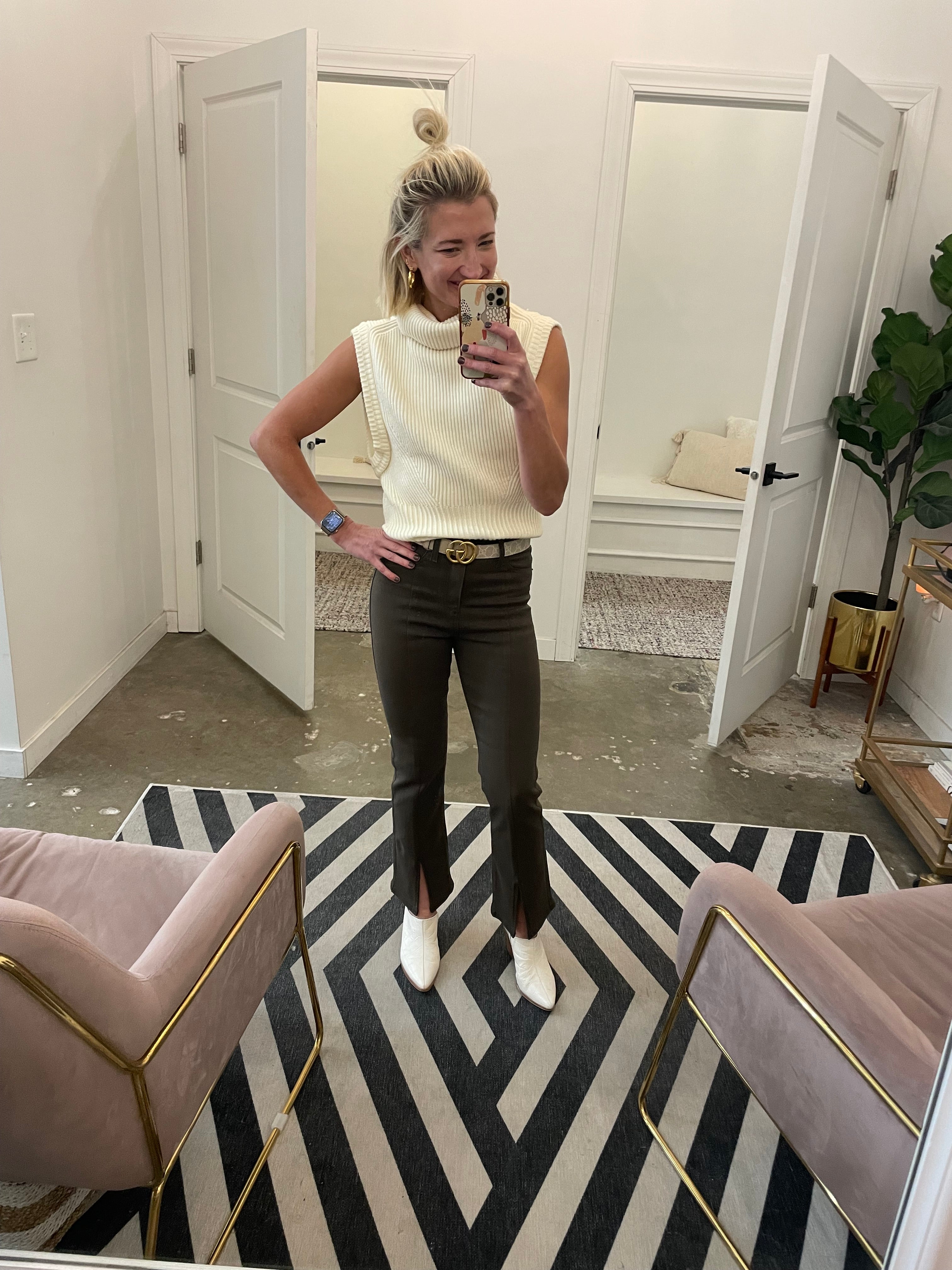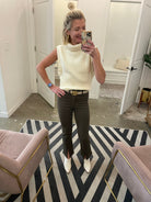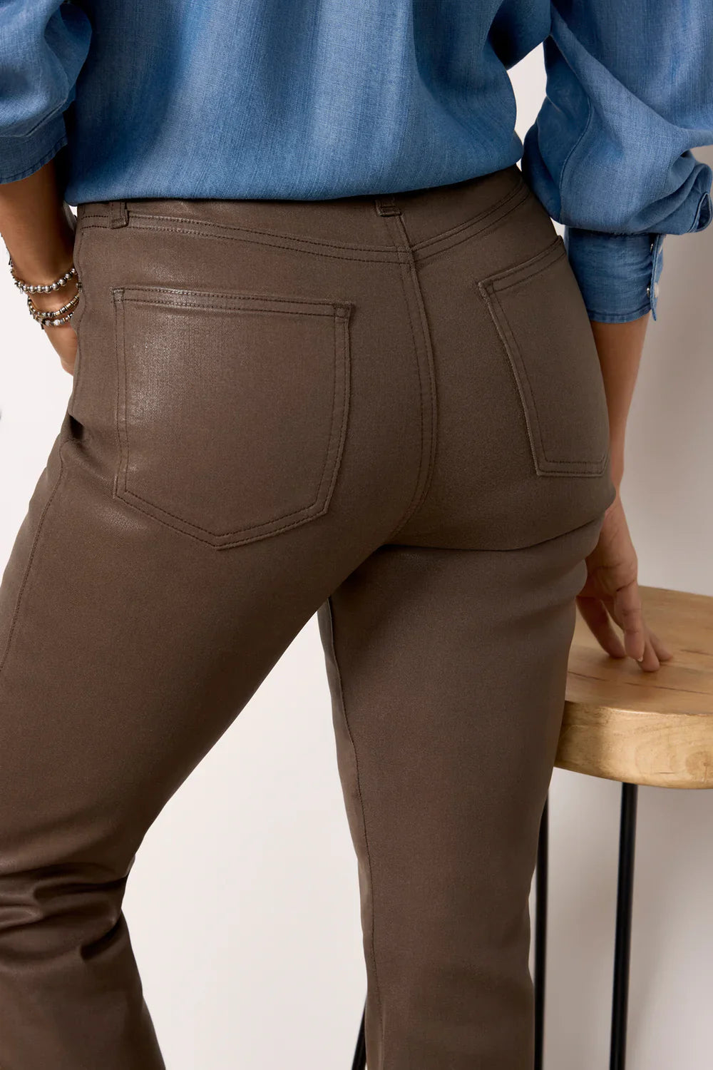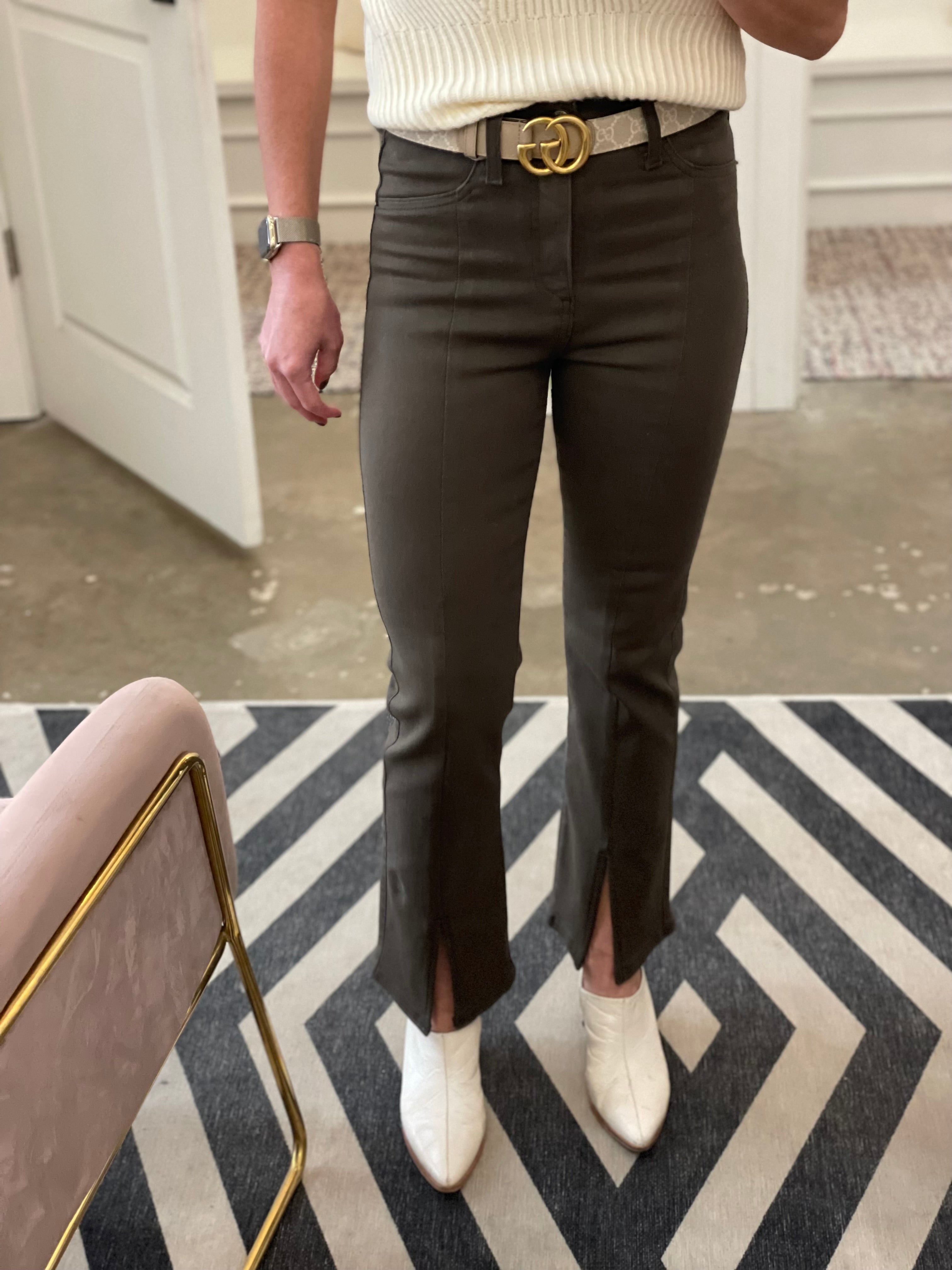 Finished in comfort-stretch coated denim, these stylish bootcut pants by Pistola feature a high-rise waist, slit front hems, and vertical seam details. Just enough stretch and structure! Pair with your favorite sweater or leather jacket! Runs true to size. Sarah shown in a 24 and is 5’3