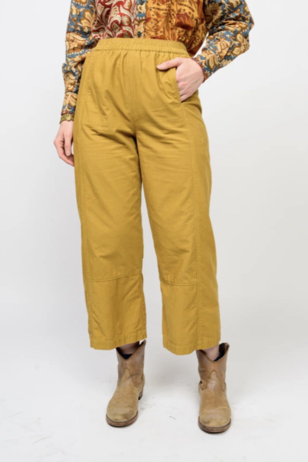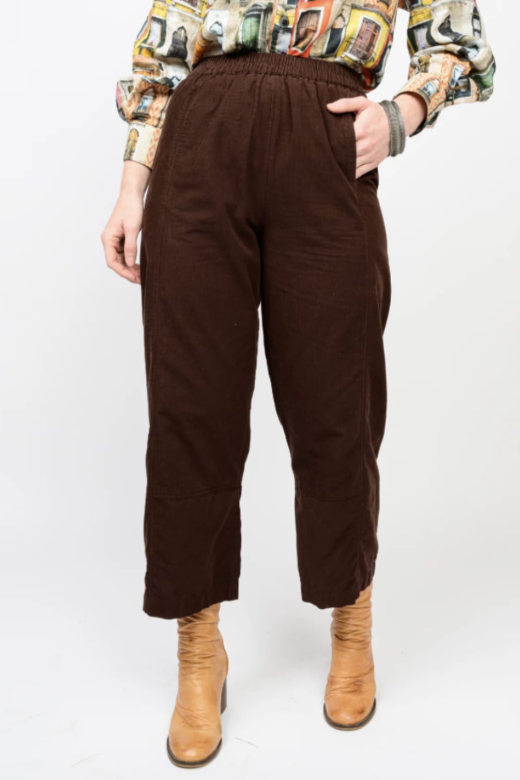 Stay stylish and comfortable in these barrel pants. With a relaxed fit, a tapered leg, and a comfortable elastic waistband, they're the perfect mix of modern style and all-day comfort. Available in two colors, brown and mustard.