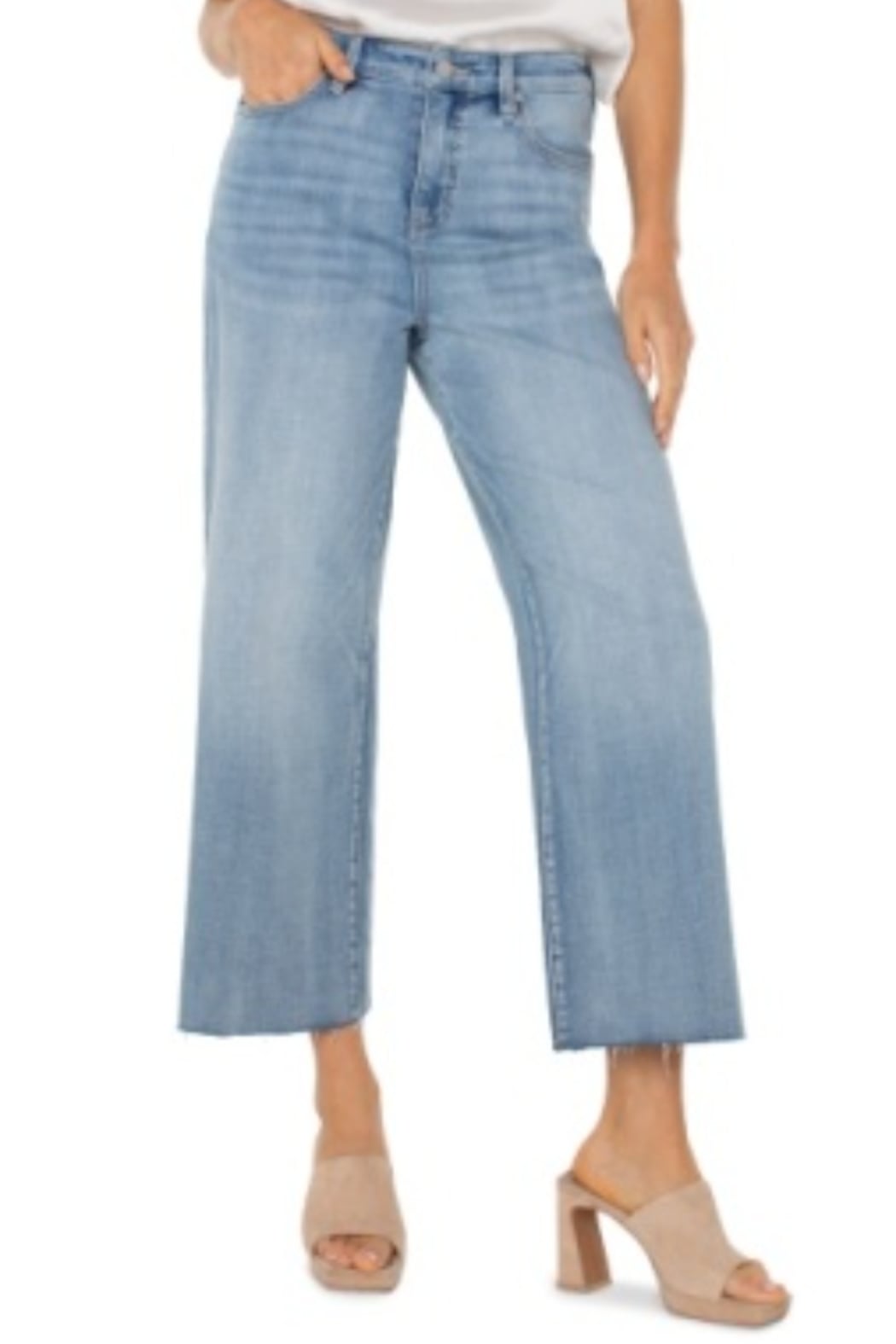 The hi-rise design not only flatters your figure but also offers all-day comfort. Crafted from premium crosshatch denim, these jeans boast a unique texture that sets them apart from the rest. 26" Inseam Hi-rise 11-1/8" Front rise; 20" Leg opening Cut hem Wide leg urn Inside Out, Machine Wash Cold With Like Colors, Gentle Cycle, Only Non-Chlorine Bleach When Needed, Flat Air Dry, Cool Iron If Needed, Or Dry Clean