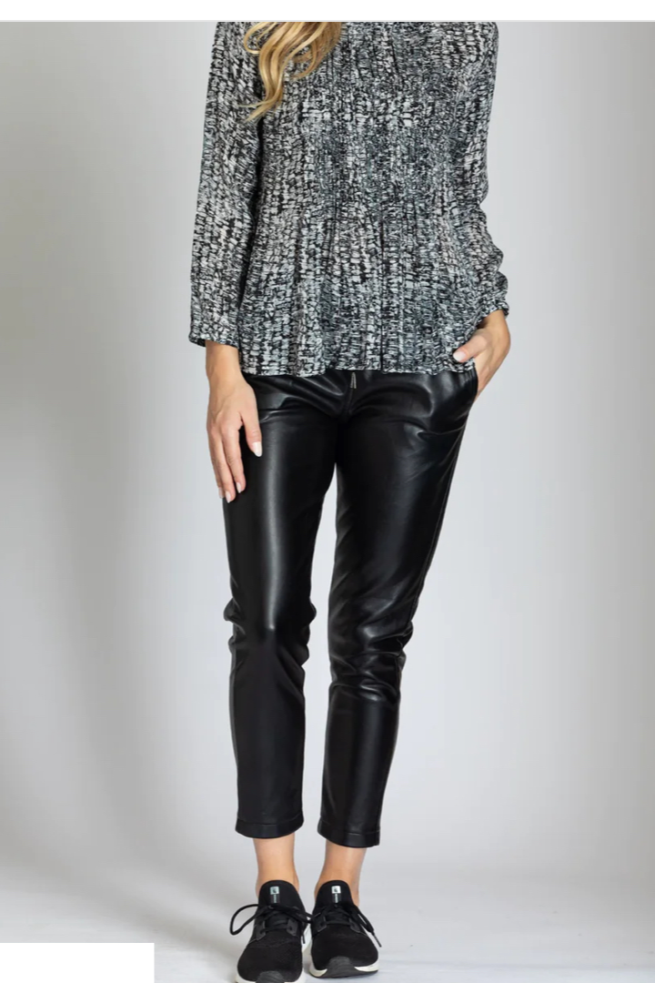Super Soft Black Leatherette Straight Pants with Drawstring Waist and Slant Pockets. These look real!