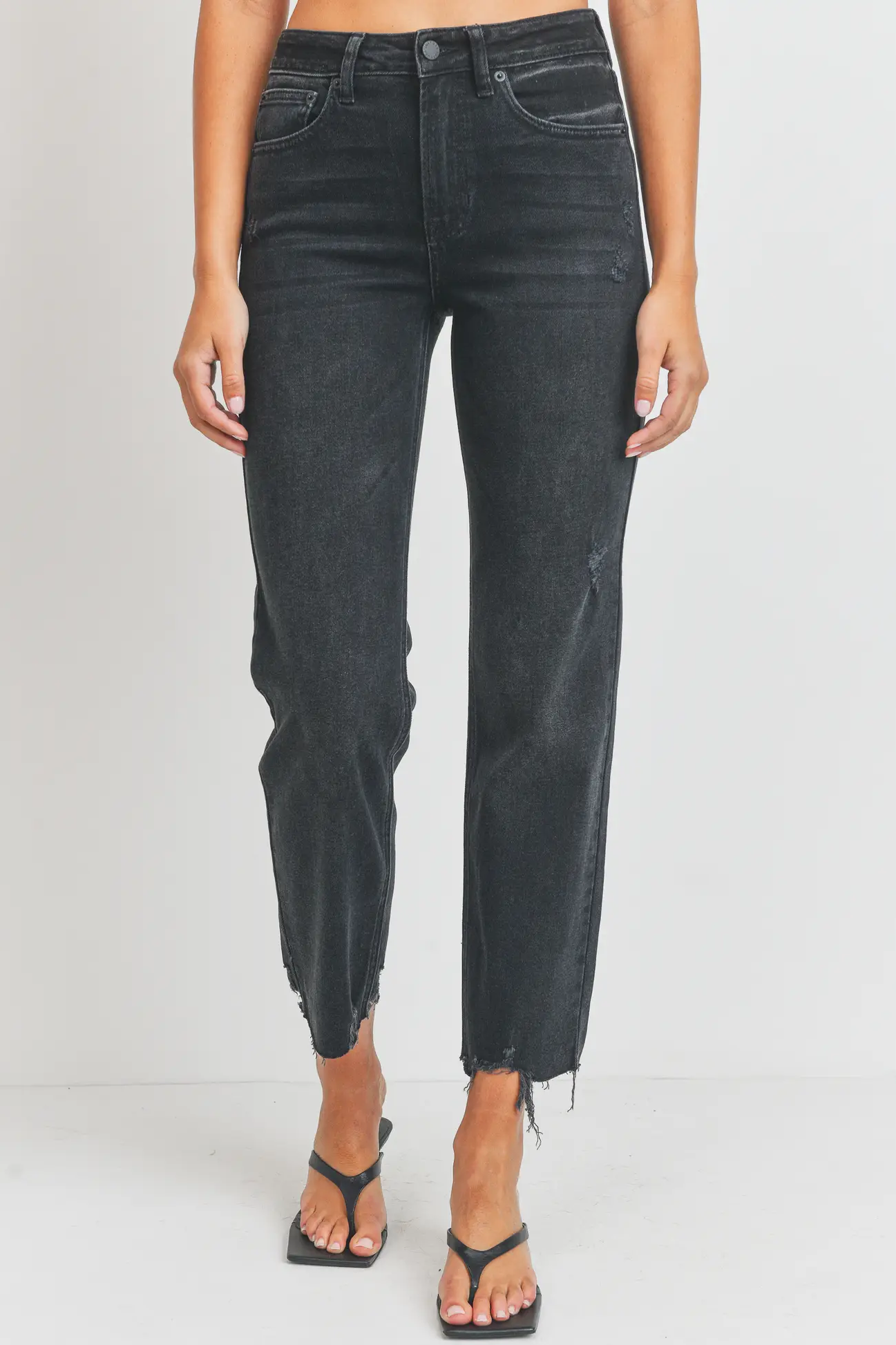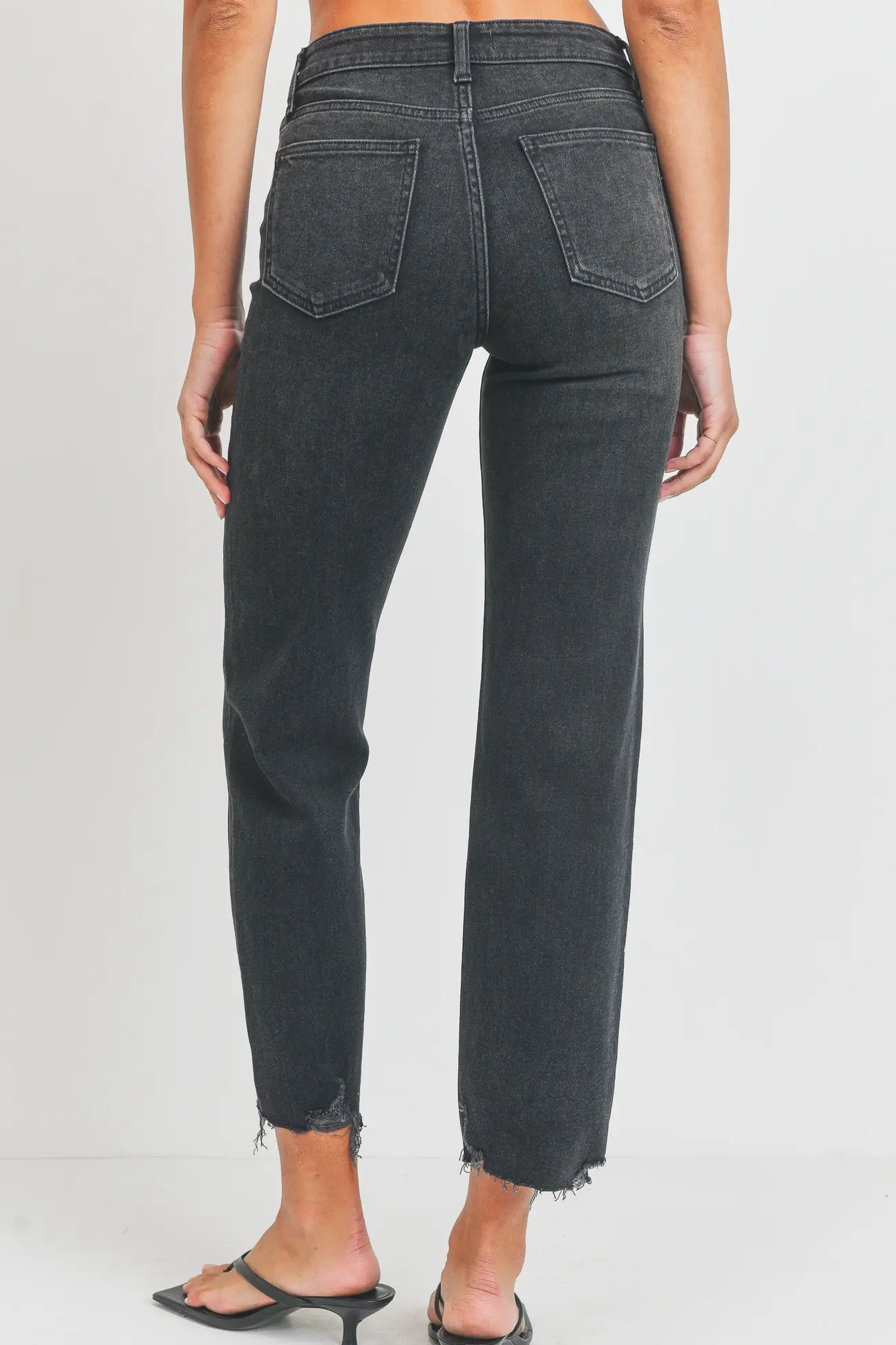 Washed Black - Hem Detail Straight Leg Jean