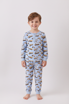 Premium blue excavator print bamboo pants set