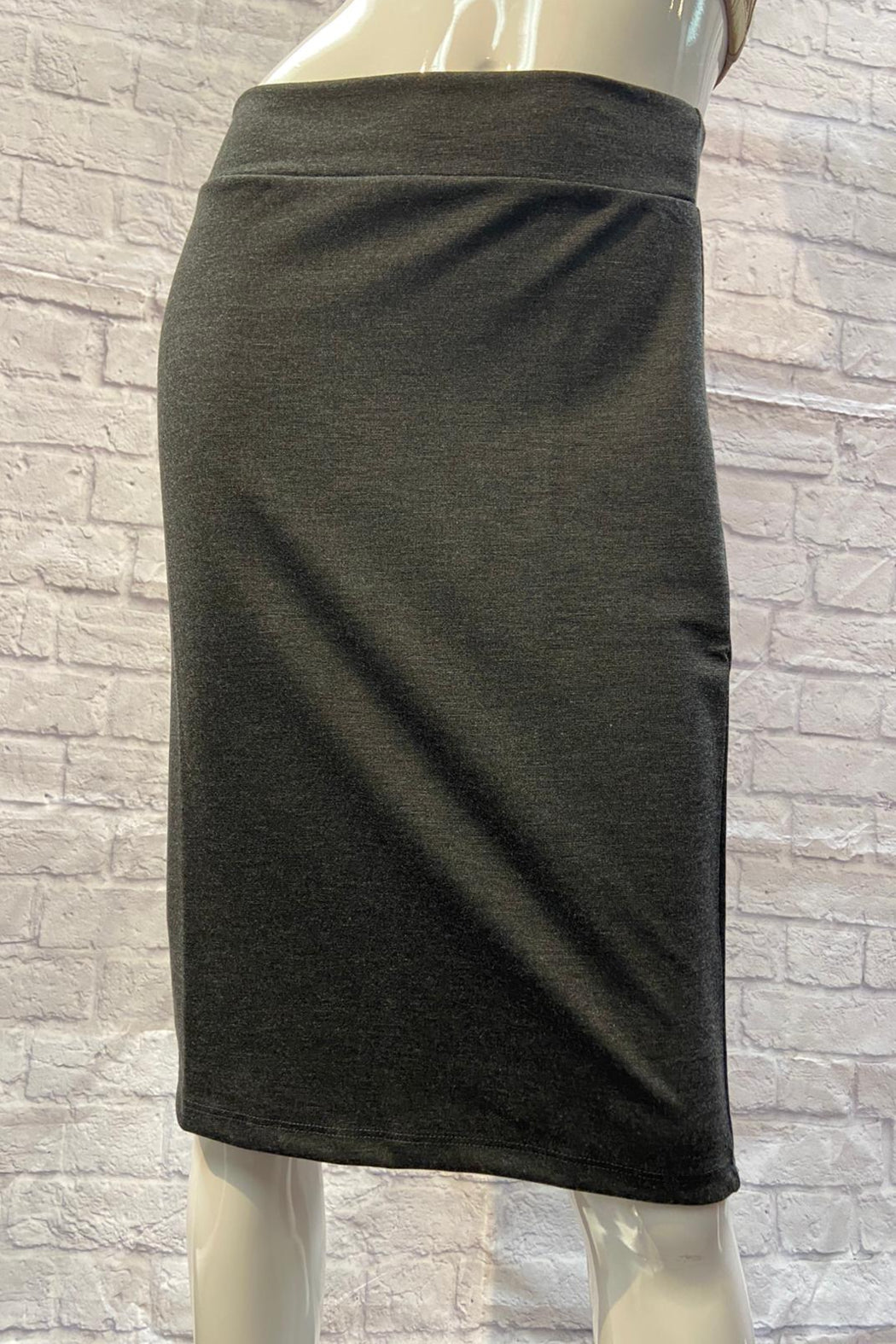 Easy to wear, pull on dressy pencil skirt. Knee length 22β long. Fabric keeps itβs color, does not fade.