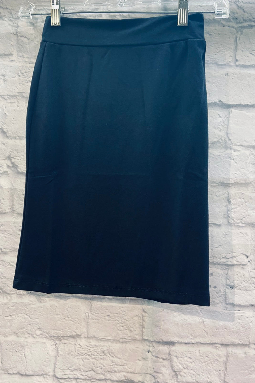 Easy to wear, pull on pencil skirt. Fabric keeps its color, does not fade. Knee length or below. MEASUREMENTS AS FOLLOWS: Waist (straight across the waistband flat) XS/9.5", S/10", M/11", L/11.25", XL/11.5", XXL/12.5" Length (from the top of the waistband) XS/14", S/16", M/18", L/20", XL/20.5", XXL/21"