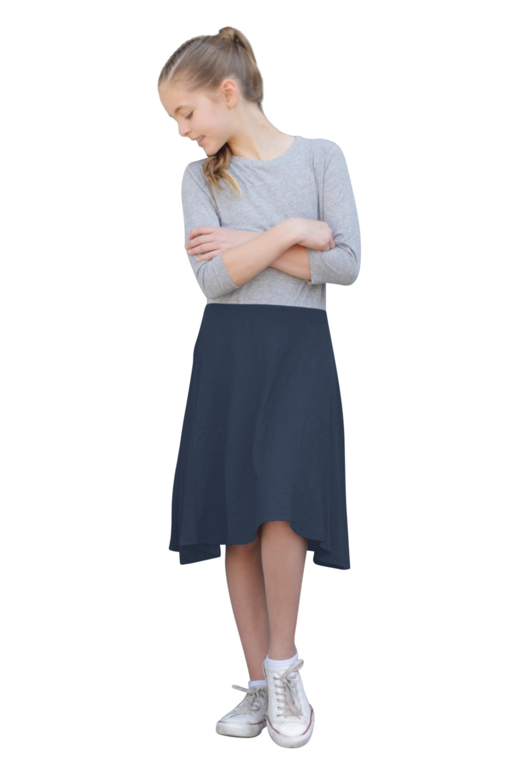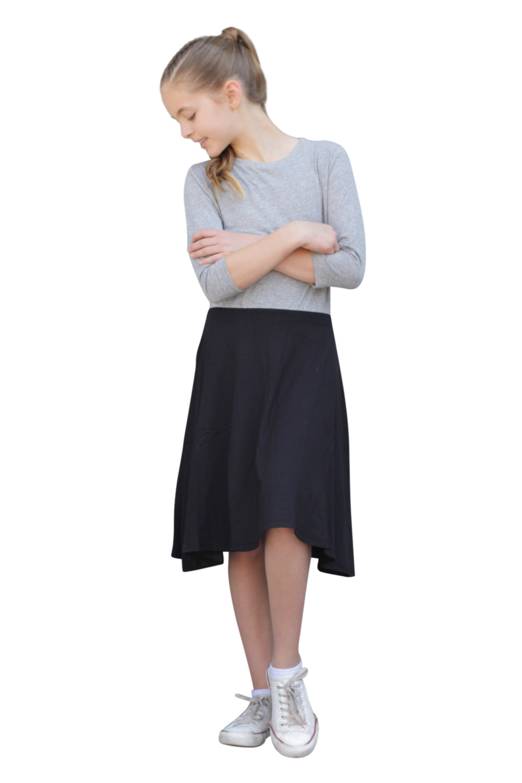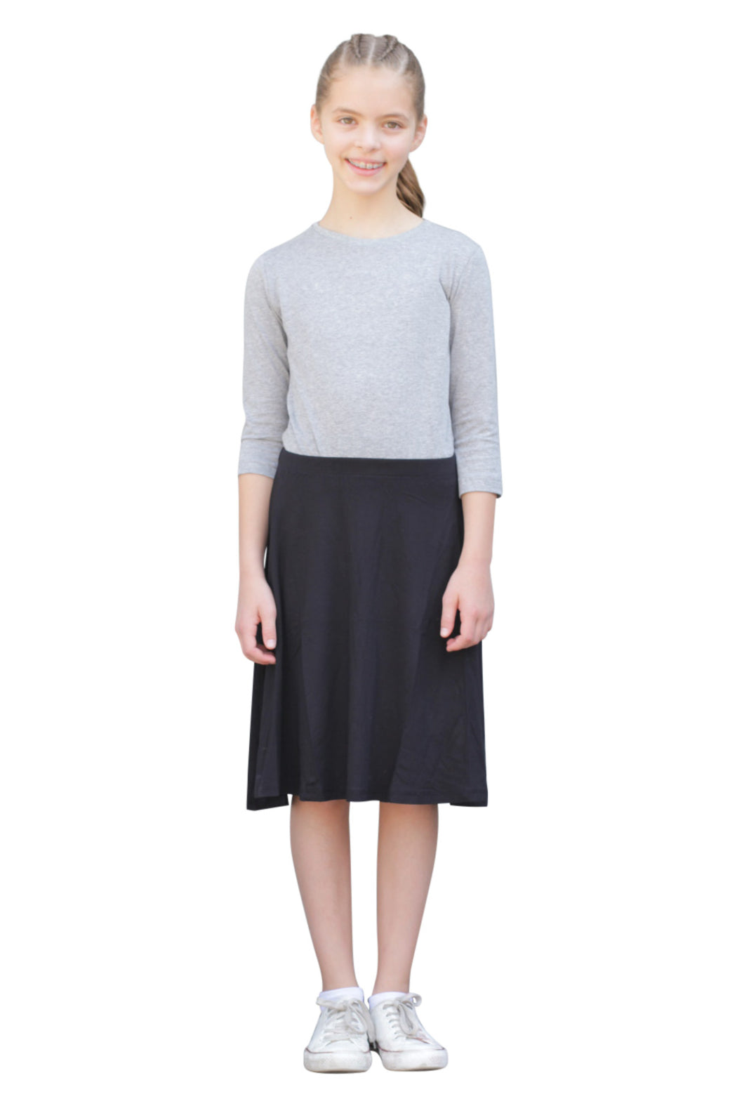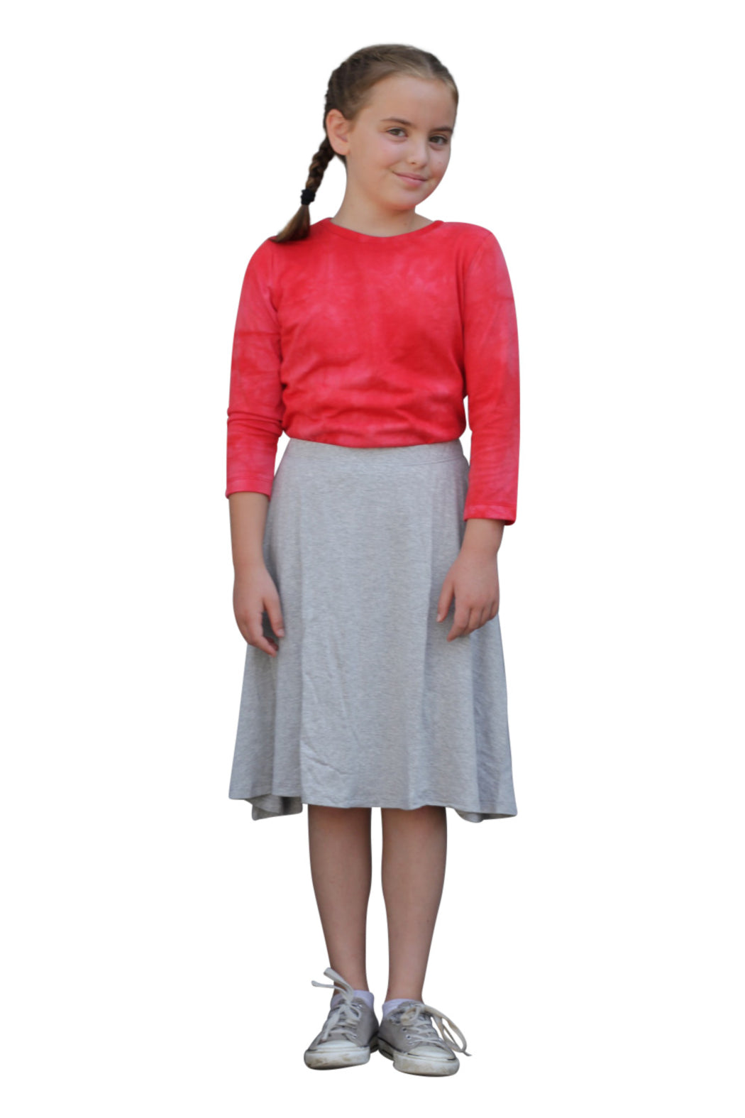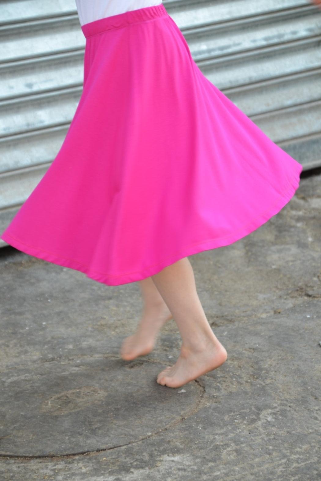 Knee length Skater skirt. Very full A-line cut. Internal elastic waistband. Lightweight with beautiful draping. Machine washable.