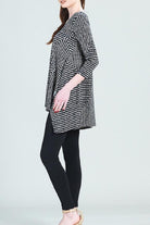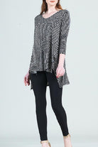 This NWT V neck tunic top is loose and flowy with a geometric design of cream and black. 3/4 sleeves and side slits that curve all around the bottom in a very flattering way. The material is soft and silky, wrinkle free and washable in cool water. Hang to dry. 70%Polyester/20%Rayon and 10% Spandex. Packs very well so be sure to take this one on your next trip.