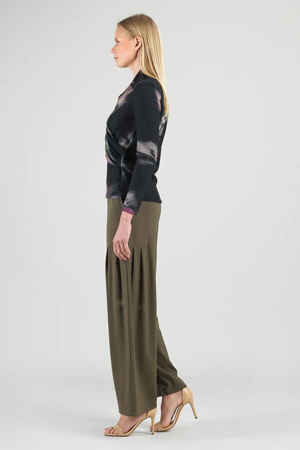 Discover how fashion becomes art with our Shadow Brush V-Neck Draped Pleat Sweater Top. This flattering piece features long sleeves, a V-neckline with a draped pleat detail that creates a faux overlay, and a straight hemline for a sleek finish.