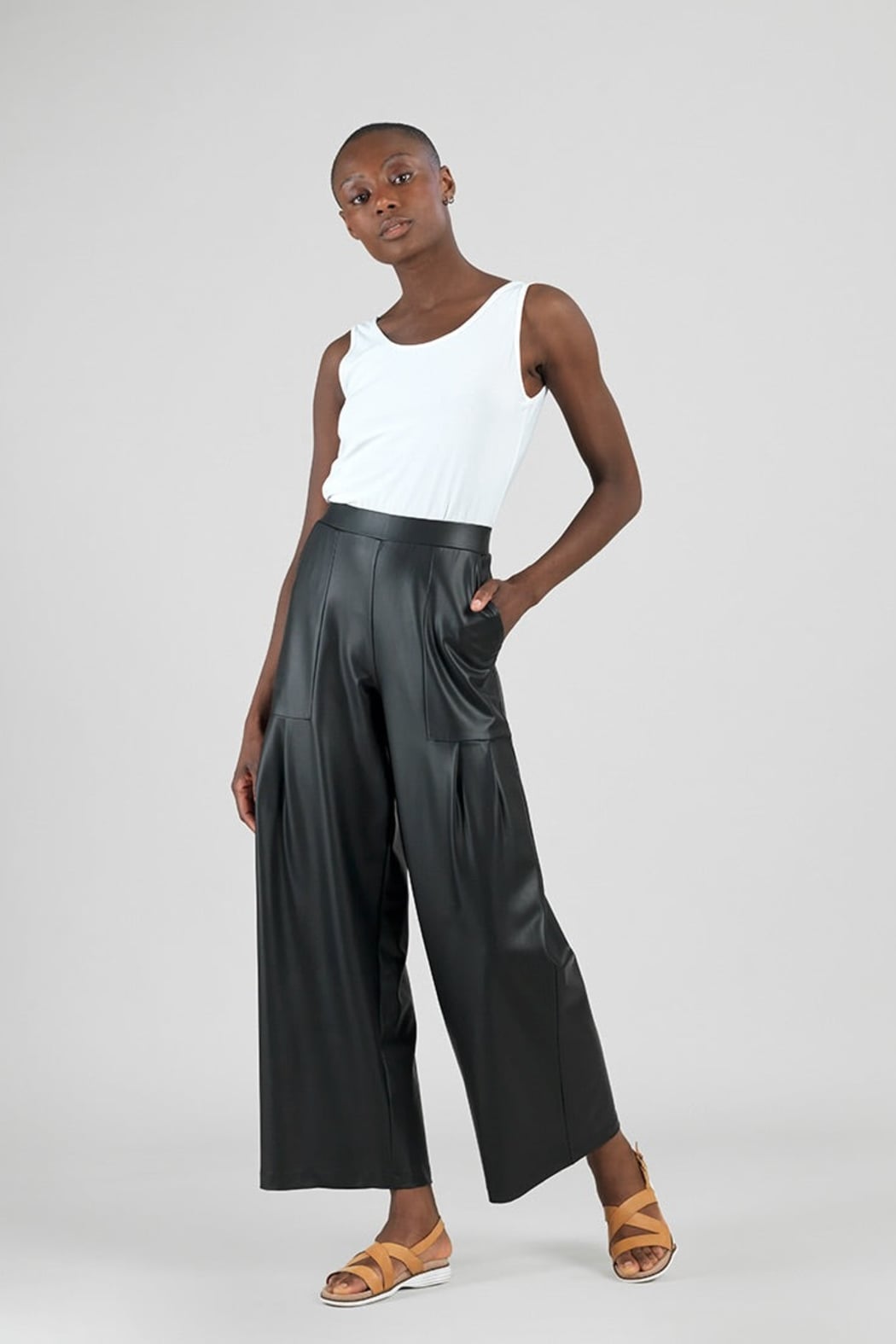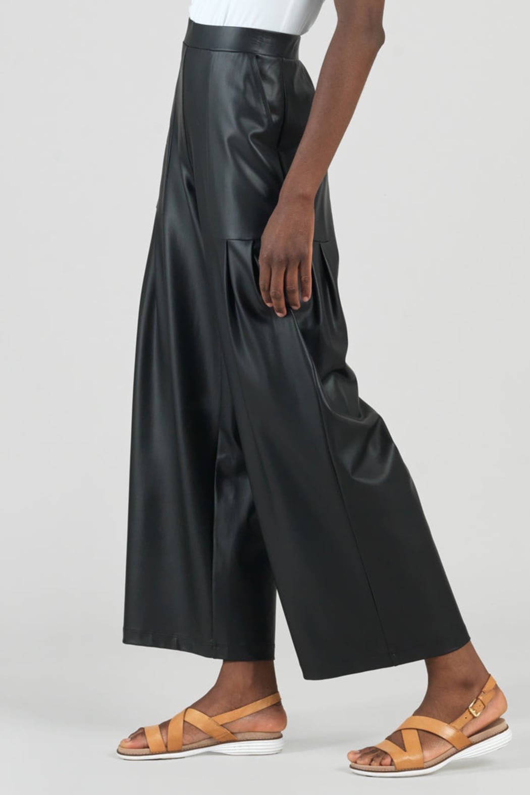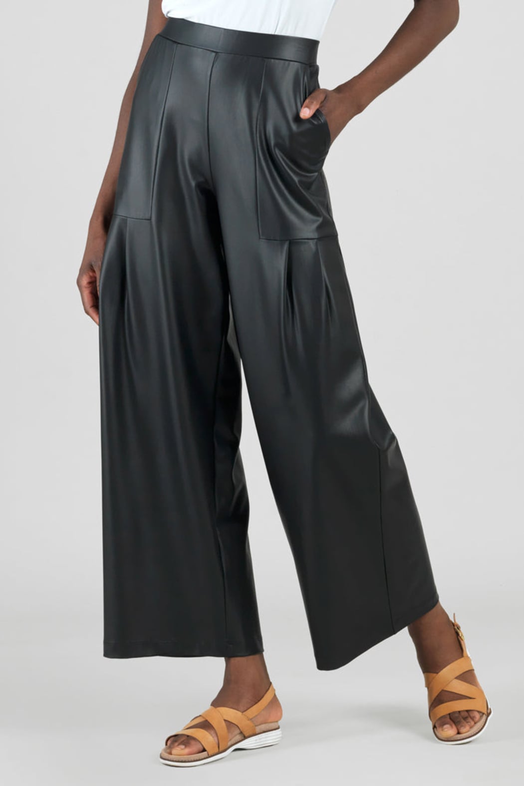 Our Liquid Leather Sheen Pleated Wide Leg Pocket Pant embodies the perfect combination of edge and sophistication! Featuring a loose-fitting wide-leg silhouette, 1.5” pull-on waistband, and side pockets with gorgeous front and back pleated details, designed to naturally flow against the body.