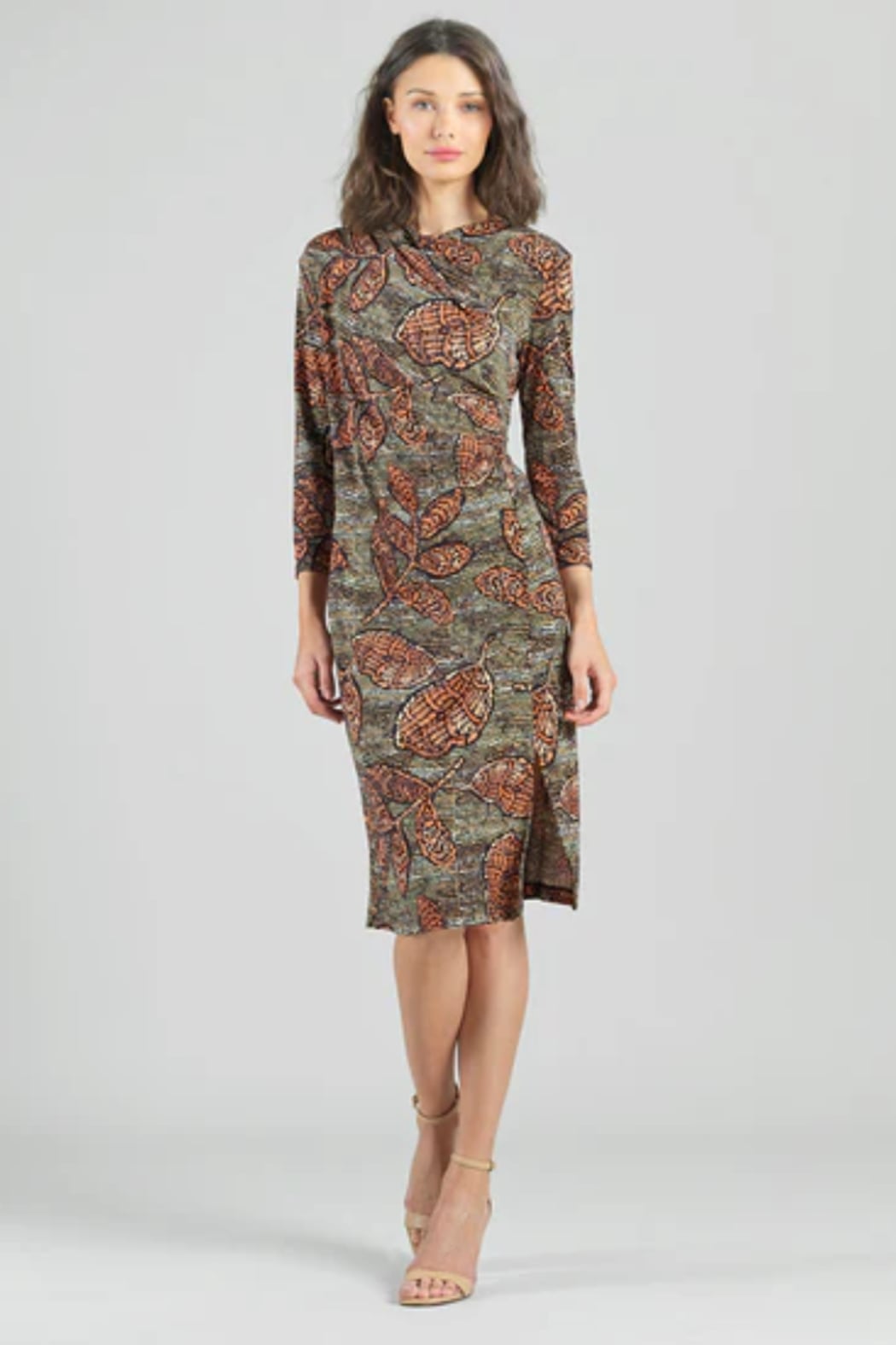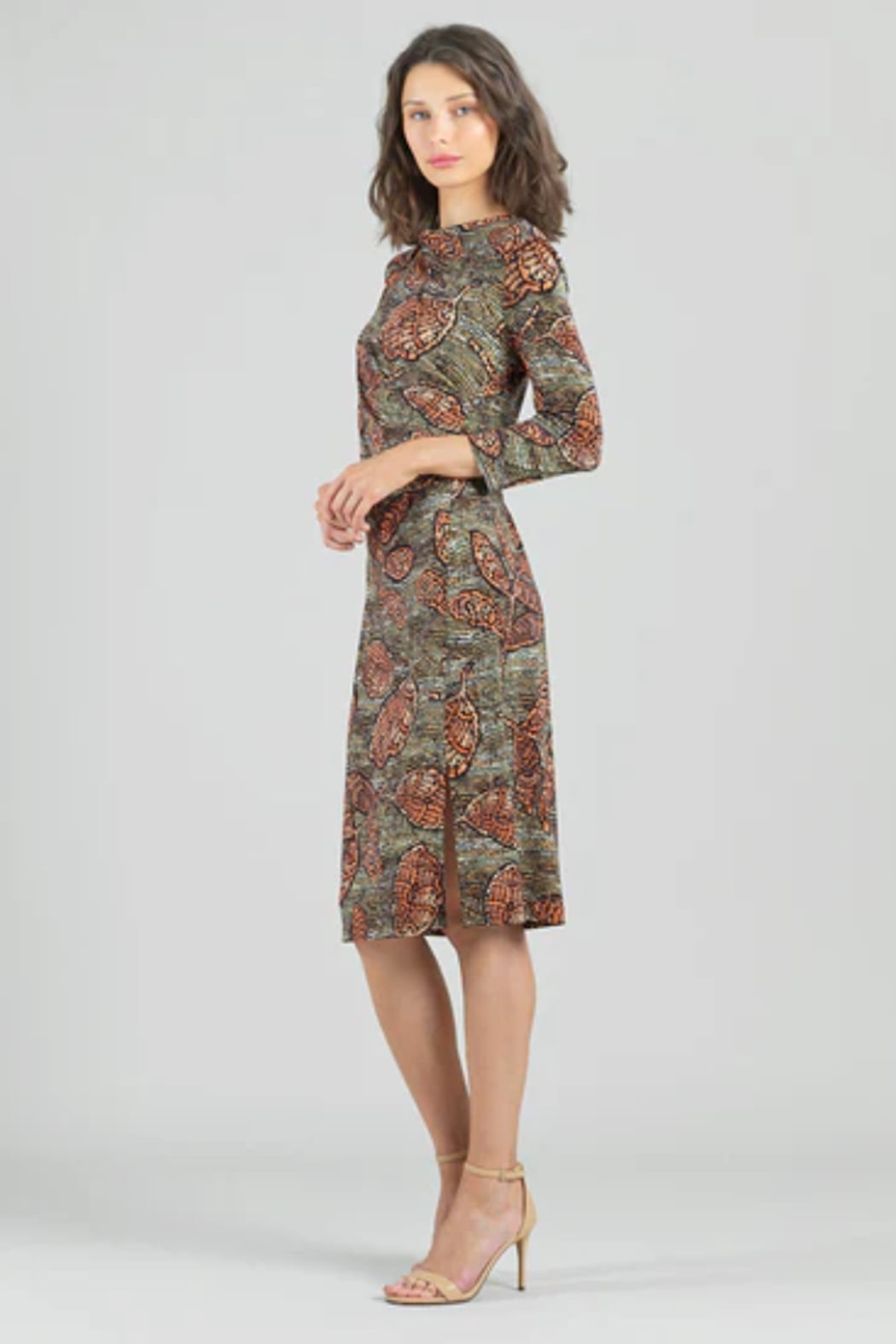 This is a gorgeous mosaic print dress with 3/4 length sleeves and a side slit. It is a midi length dress which is perfect for upcoming fall. Each piece is unique and the pattern placement will be different on each piece. There is a 10" left side slit on this dress which allows for easy movement. This is made of a nice fabric that is travel friendly and wrinkle free.