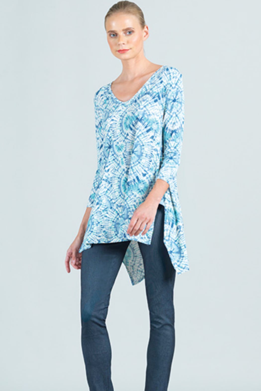 Trust your intuition! Eternal style can lie in something as unique as our Sunburst Mandala Print Light Knit Classic V-Neck Hi-Low Envelope Hem Tunic! Featuring a v-neckline, 3/4 length sleeves, and a hi-low envelope hemline that creates a modern shape that complements many body types. A whimsical sunburst mandala print comprised of shades of periwinkle, sky and aqua blues with hints of white - the perfect piece to enlighten your mood and wardrobe!
