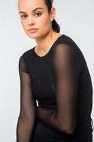 Elevate your layering game with the Florence Double Sheer Top from AMB Designs’ premium LaPiel Collection. Crafted in the USA from an ultra-soft, silky mesh, this modern essential features a double-layered body for smooth coverage and single-layer sleeves that create an elegant, sheer effect. Lightweight, comfortable, and beautifully textured, it’s the perfect piece for adding depth under jackets, sweaters, or statement vests.