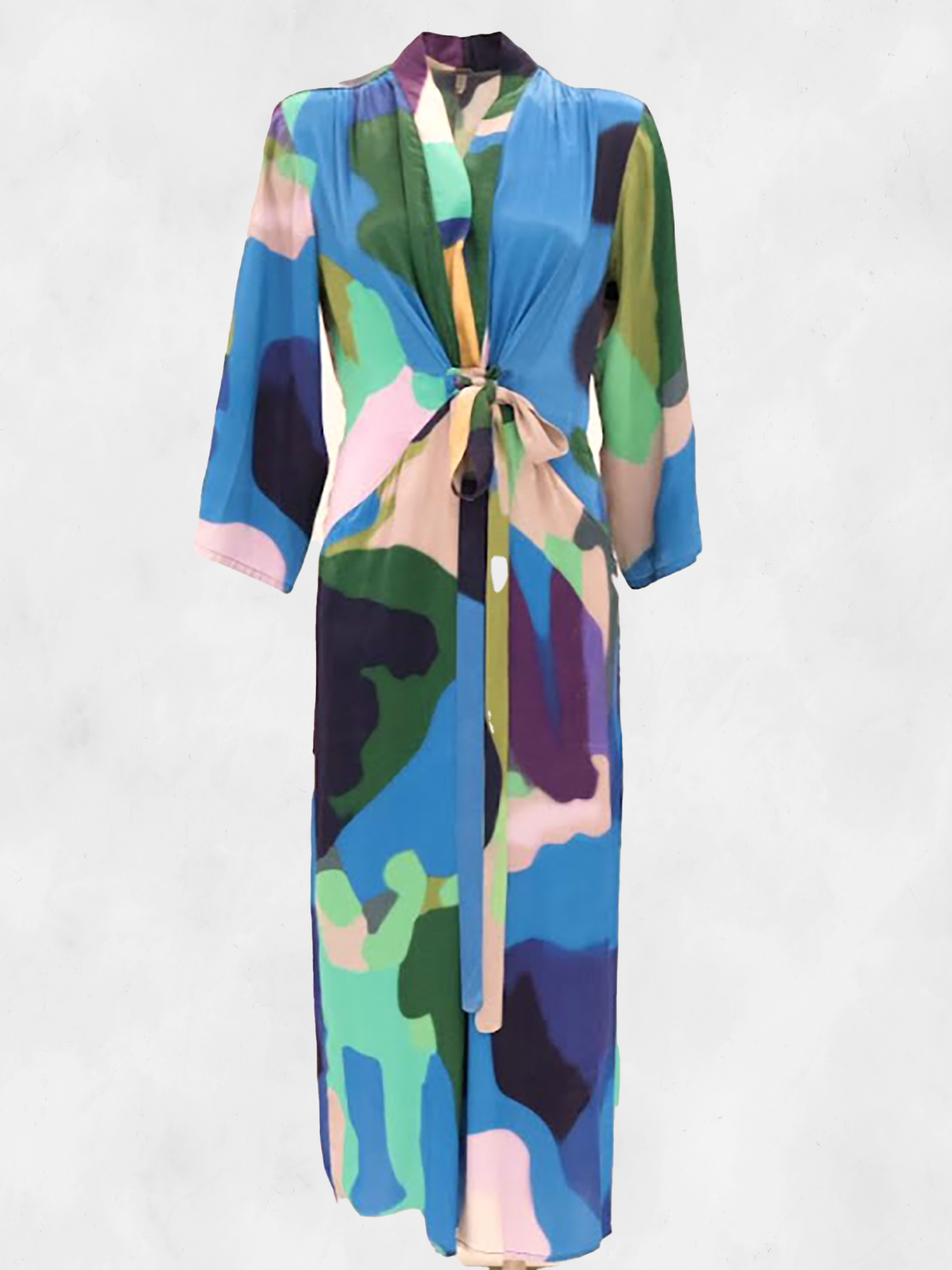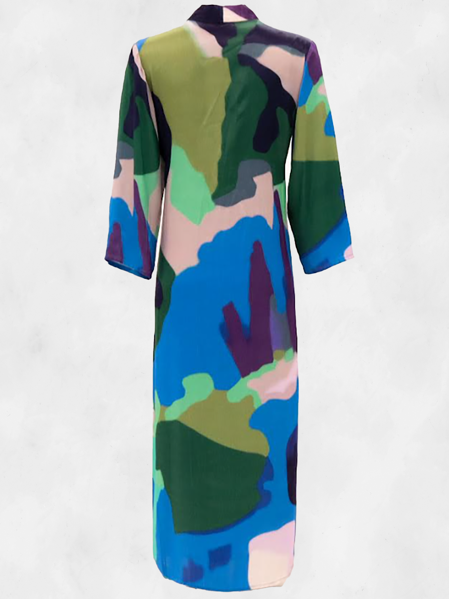 •LOOK: Like a water color painting , this dress is like a dream. Shades of green and blue and purple create an almost abstract collage of color.