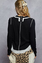 Black Rib & Raw Edge Long Sleeve Top