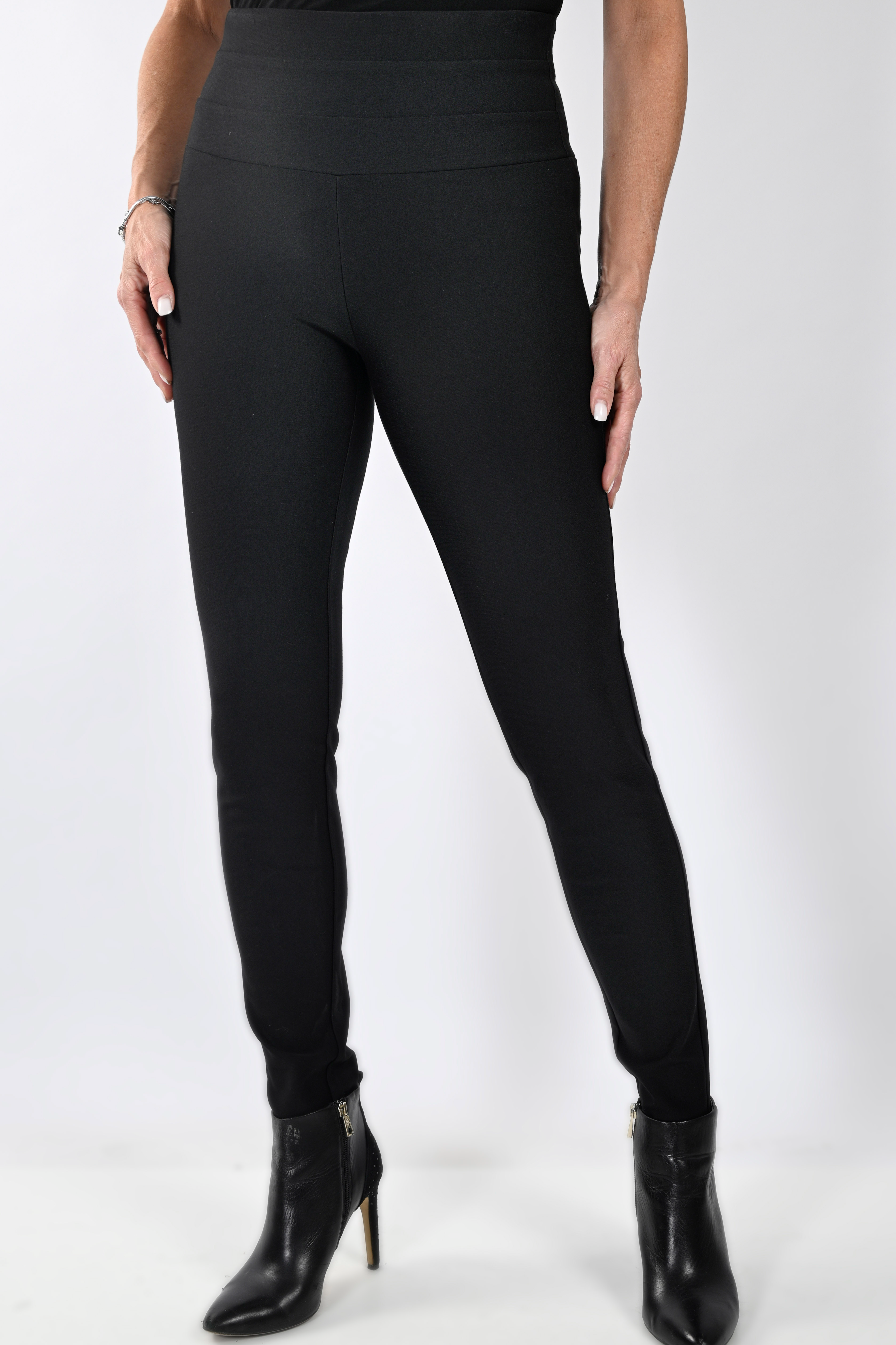 This Frank Lyman slim leg pant is constructed in a flattering, stretchy fabric that hugs your form and flatters your figure. Featuring clean lines and a structured fit, this will pair beautifully with loose-fit, relaxed blouses and drapey sweaters. Style your fall/winter wardrobe starting with the bottom.