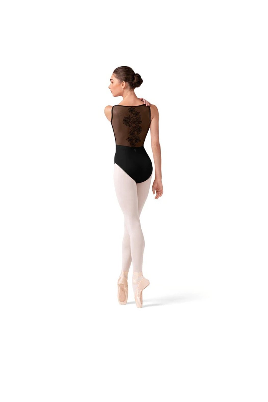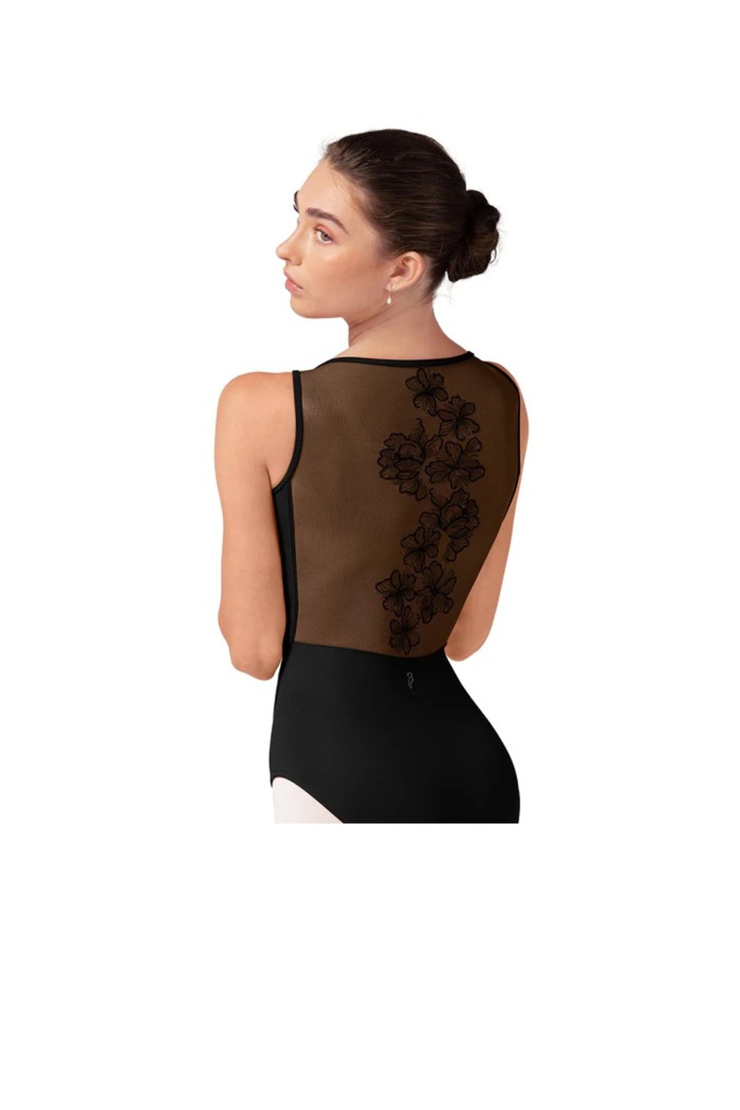 Our Ladies Bloch Embroidered Boat Neck Leotard in black features a wide boat neck in the front nad mesh back with embroidered flowers. Pair with your favorite tights to wear to the studio!