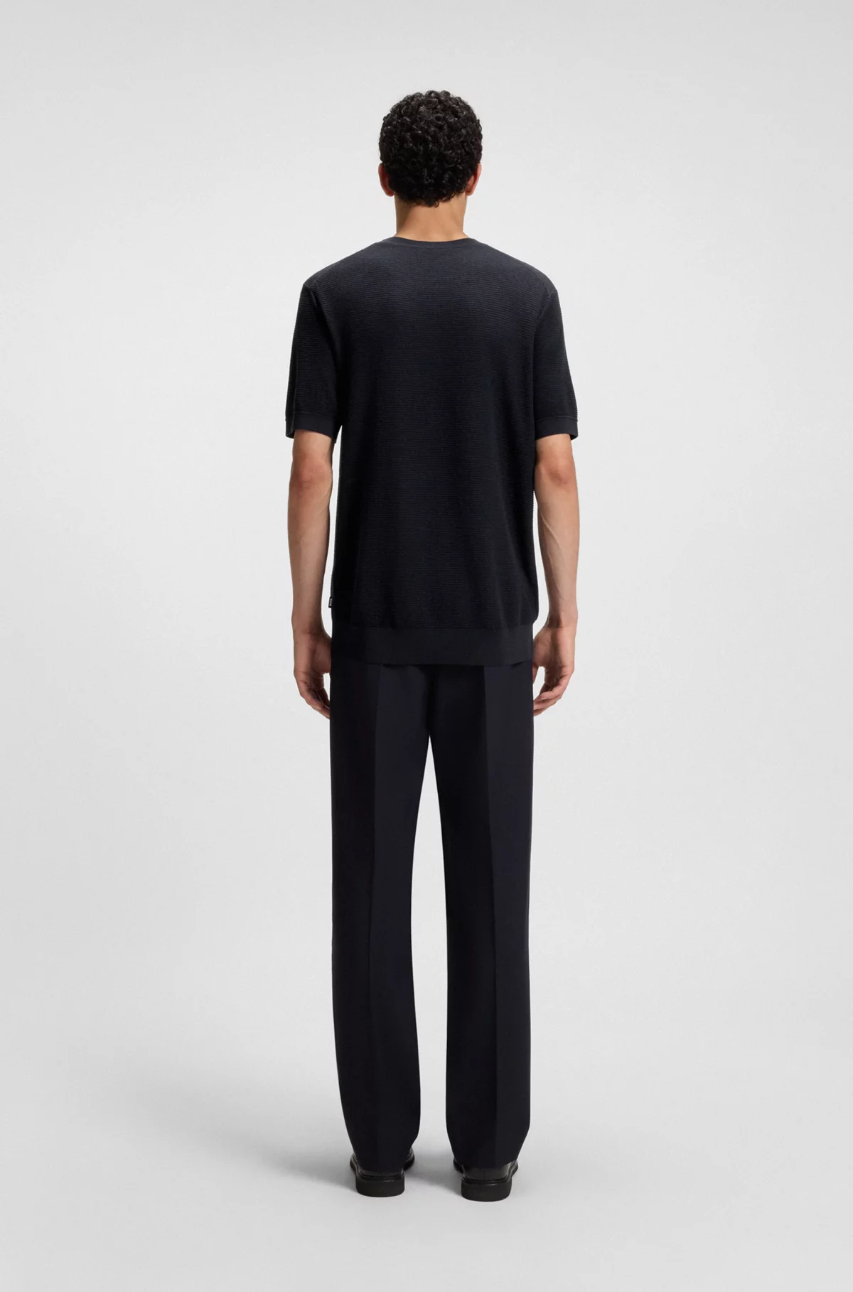 This Boss Knit Sweater with Mixed Structures is your new go-to for effortless style. Crafted from a breathable cotton blend, it offers a comfy regular fit that’s perfect for layering. With a classic crew neck and short sleeves, it keeps things cool and casual while the unique knit textures add a fun twist to your everyday look. Ready to mix, match, and make a statement? This sweater’s got you covered!