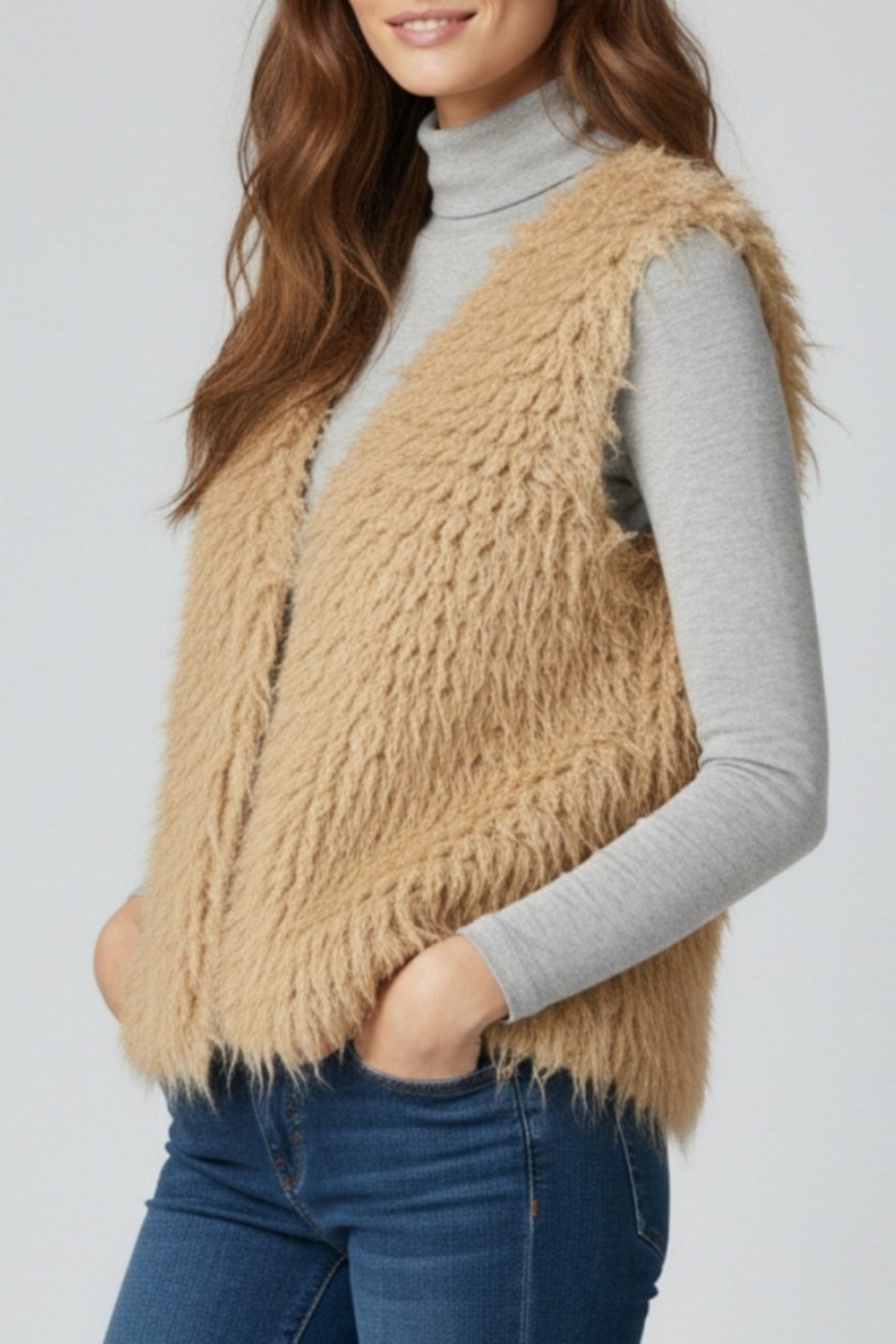 Layer on cozy texture with the Brahman Vest, a shaggy faux-fur sleeveless topper that elevates casual looks. The Q2 vest features a plush, long-pile faux fur and a relaxed open-front silhouette that hits around the hip for easy layering. Wear it over tees, turtlenecks, or a simple dress to add warmth and a boho-chic vibe.