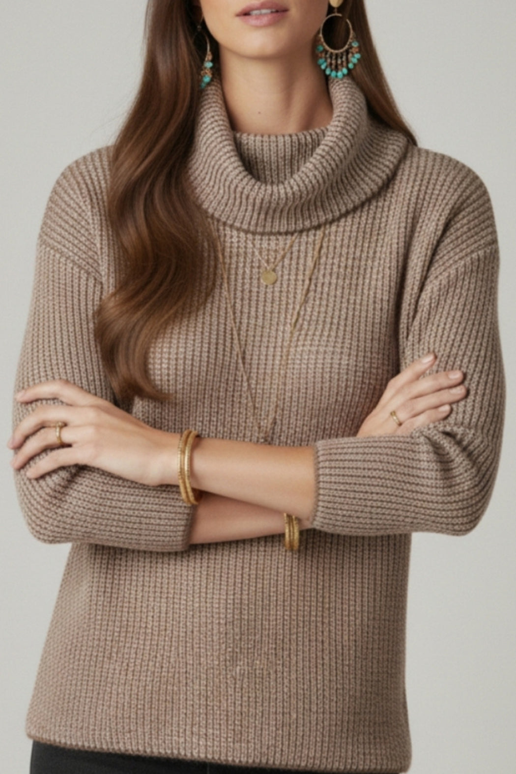 A ribbed knit sweater with a relaxed cowl neckline and a slightly boxy silhouette, the Bravo Sweater is cozy and polished. Q2 designed this piece in a midweight yarn with textured stitch detail and long sleeves for easy layering. Wear it with jeans for casual weekends or tuck into a skirt for a work-friendly look. The neutral tone keeps the styling versatile and season-spanning.