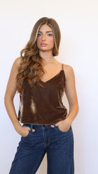 Add a touch of luxe to your wardrobe with our Velvet Cropped Camisole. Crafted from soft, plush velvet, this cropped cami offers a flattering fit and a subtle sheen that elevates any outfit. Its minimalist design makes it perfect for layering under jackets, cardigans, or pairing with high-waisted skirts and pants for a chic, modern look. Ideal for both day and night styling.