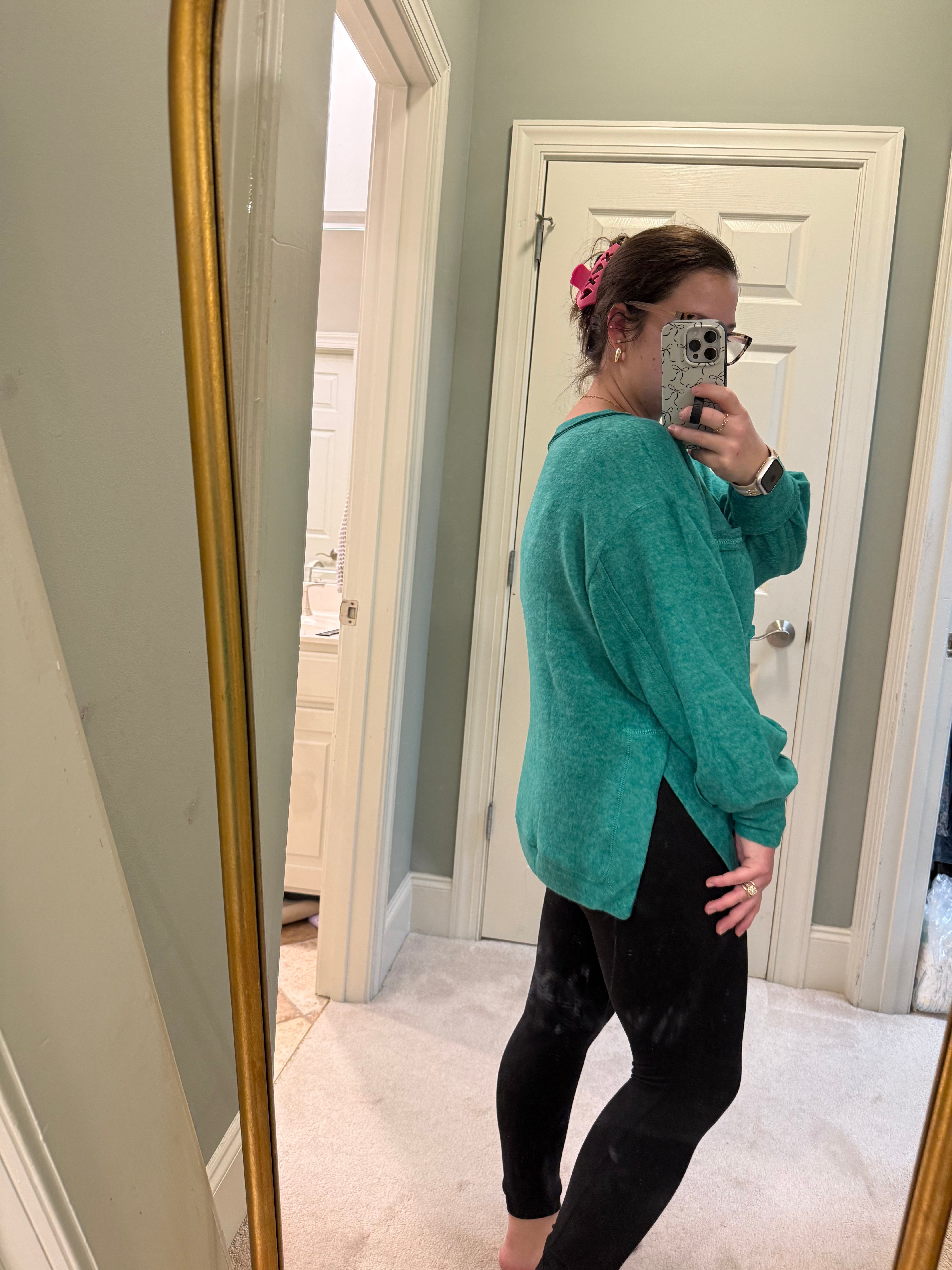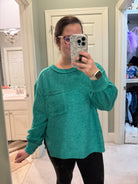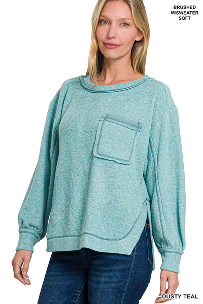 BRUSHED HACCI HI-LOW ROUND NECK SWEATER- TEAL
