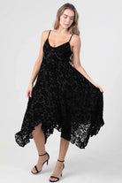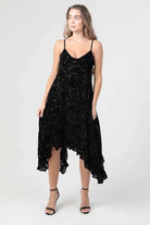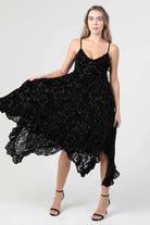 Burnout Velvet Hanky Hem Dress – Black Twist Front Boho Elegance
