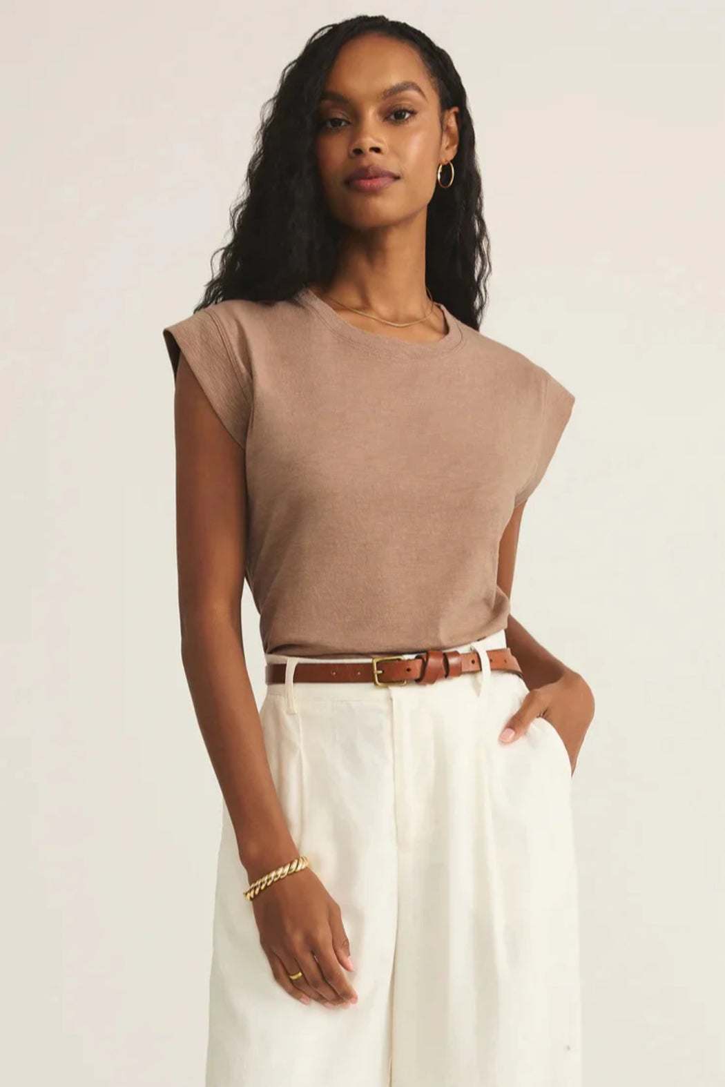 Lightweight, relaxed, and perfectly broken-in, this cotton slub tee is your new favorite go-to. Ribbed cap sleeves add a subtle touch of texture for easy, laid-back style.