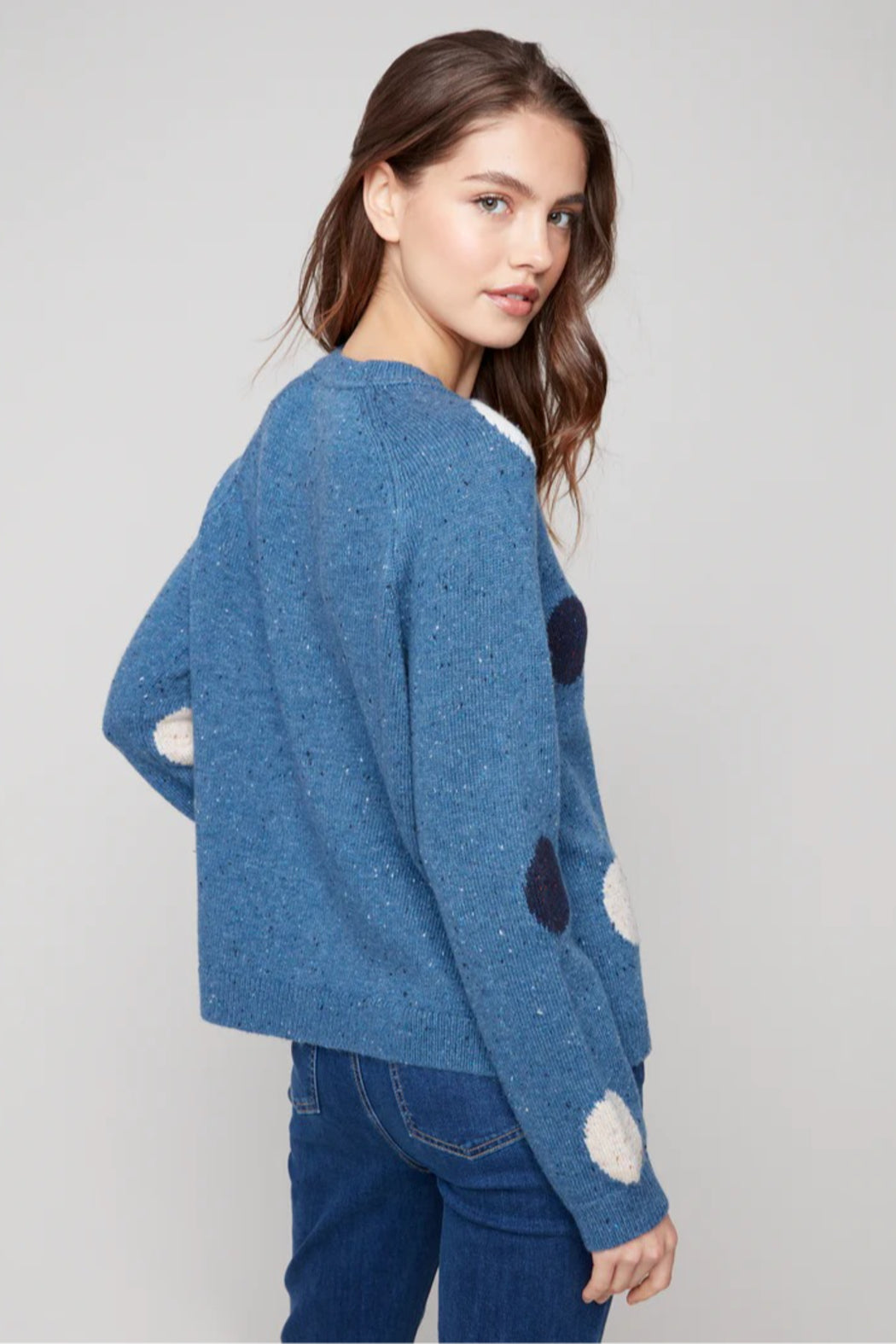 Because it's never too soon to add to your sweater line-up, this soft pullover is sprinkled with polka dots for a cheerful impression. Made in a soft acrylic blend, it's cozy warm without being bulky. The crew neckline, cuffs of the long raglan sleeves and hemline have ribbed knit accents.