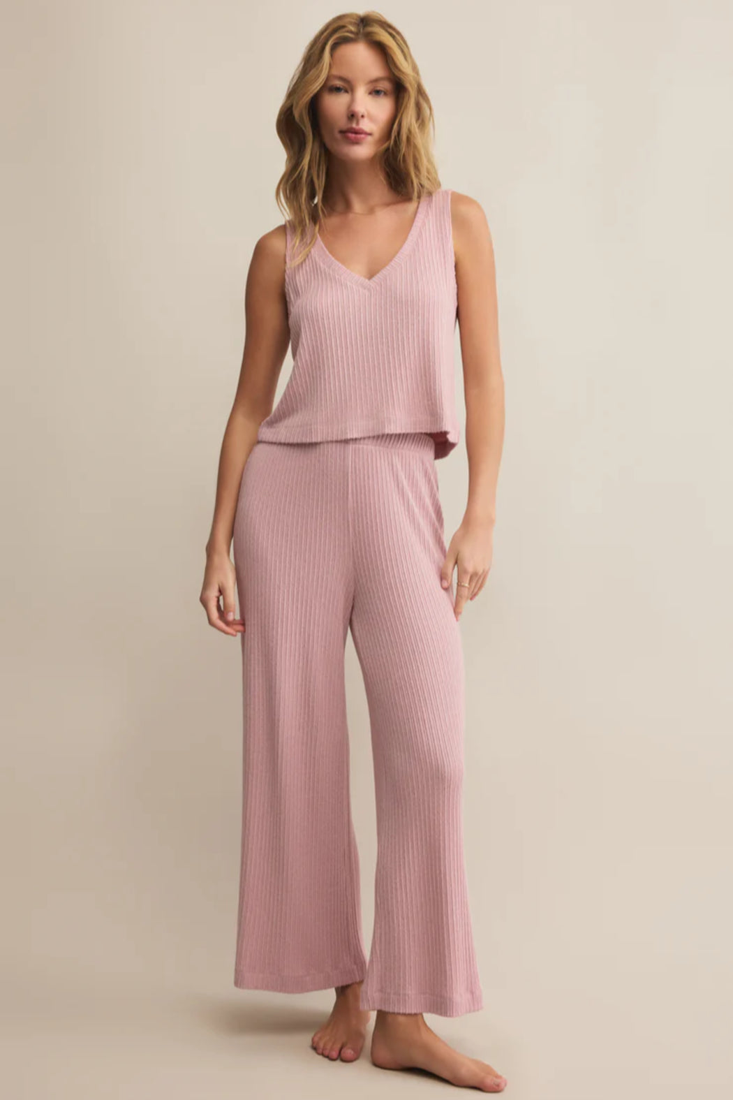 Flowy and ultra-soft, this wide-leg pant is made from our new Silky Mini Rib fabric that feels like a dream. A pull-on high-rise fit with an elastic waistband makes it your go-to for relaxed all-season comfort. -Wide leg -Silky Mini Rib: 97% Polyester, 3% Spandex -High rise -Full length -Elastic waistband -Midweight -Machine Wash Cold, Gentle Cycle, Tumble Dry Low