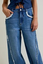 Add some dainty details to your jean wardrobe with the Daley Lace Trim Jeans. These mid rise jeans feature a baggy relaxed leg shape with delicate white lace detailing. Follow @lunaboutiquecanton on instagram and DM us with any questions :)