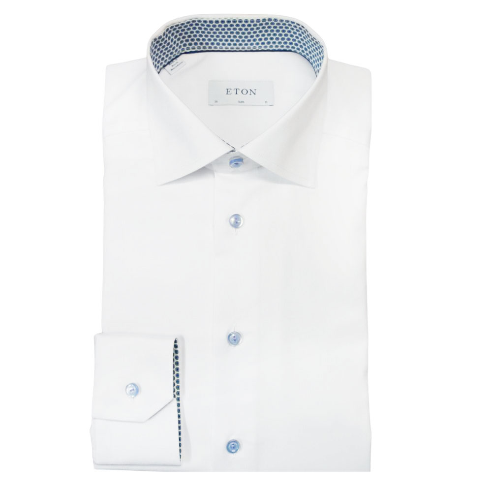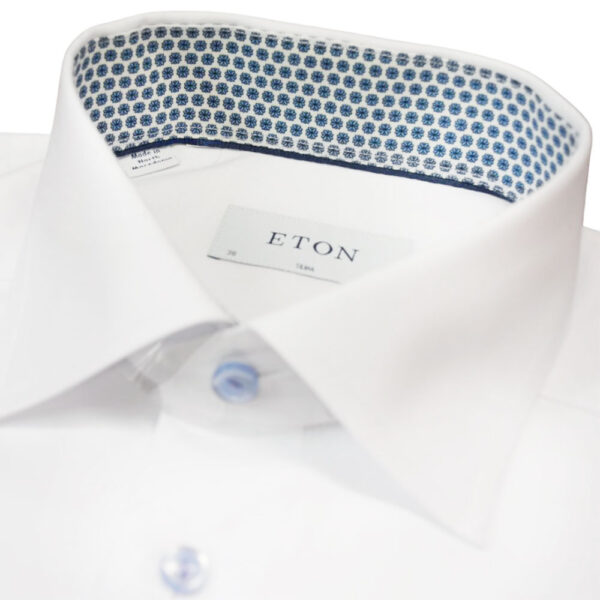 Add a dash of personality to your wardrobe with Eton's Signature Twill Slim-Fit Shirt. Made from high-quality non-iron cotton, this shirt features a white twill fabric and a playful blue floral insert on the collar and cuffs. The tailored cut ensures a sharp and stylish appearance.