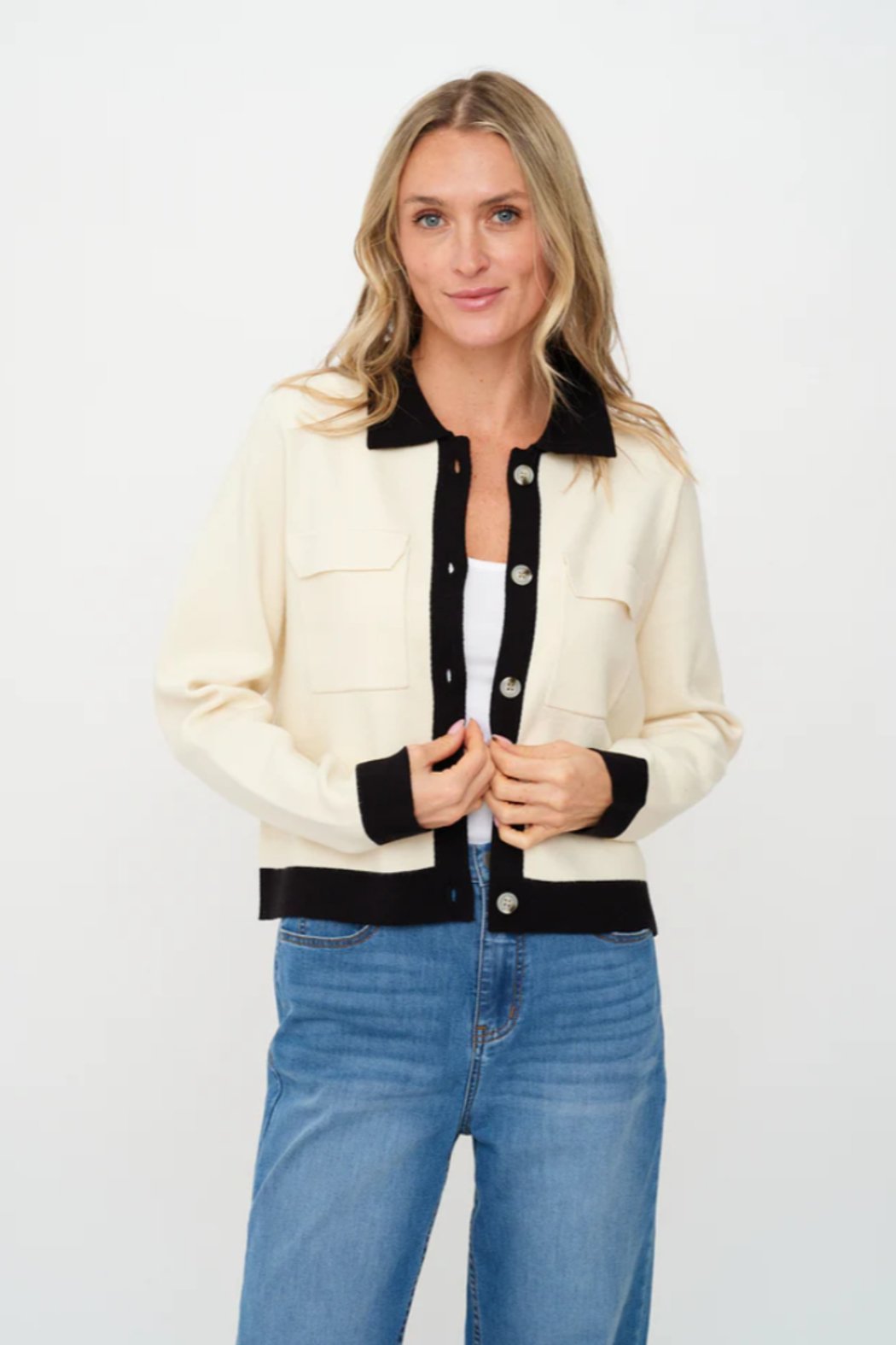 Cozy up in style with the Fallon Cardigan. This piece showcases a trendy color block pattern, complete with buttons and pockets. Its adaptable design makes it a fun and essential addition to any outfit.
