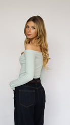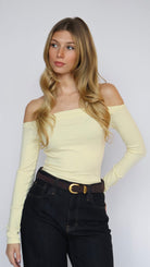Turn up the sophistication with our Fitted Off-the-Shoulder Top, designed to highlight your neckline while offering a sleek, curve-skimming silhouette. The off-shoulder cut brings a touch of effortless allure, while the fitted design creates a polished, modern look. Perfect for pairing with denim, skirts, or tailored pants, this top transitions easily from daytime chic to evening-ready style.