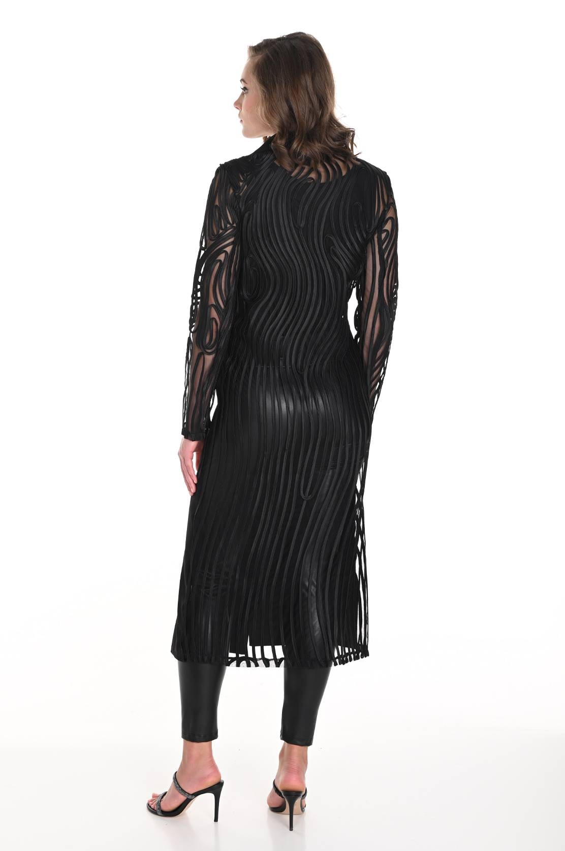 Please note: This woven jacket features a striking black design with long sheer sleeves, perfect for layering and adding a touch of elegance to any look.