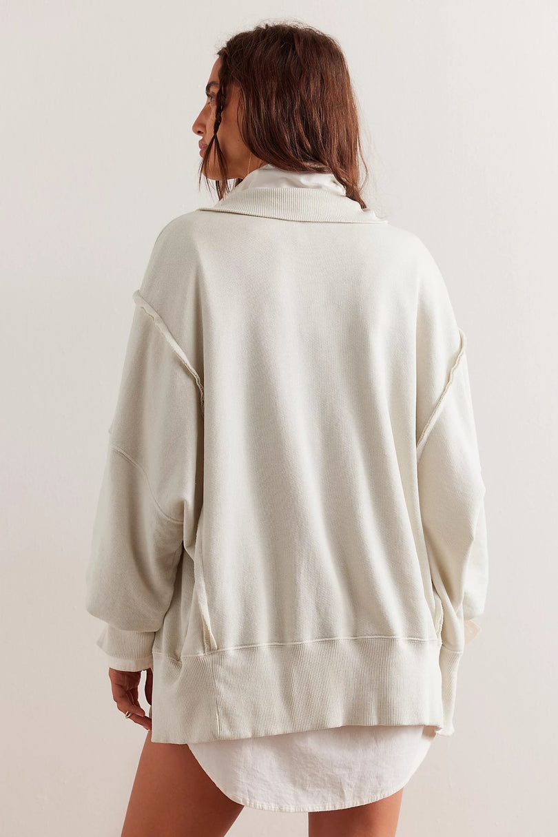 Embrace cozy vibes with the Free People Camden Henley, a slouchy, oversized layer made from irresistibly soft fabric. Its collared neckline with snap buttons adds a touch of charm, while drop-shoulder sleeves and exposed seams bring relaxed style. The side-slit detail and ribbed hems add playful flair, making it the perfect go-anywhere piece you'll reach for again and again.