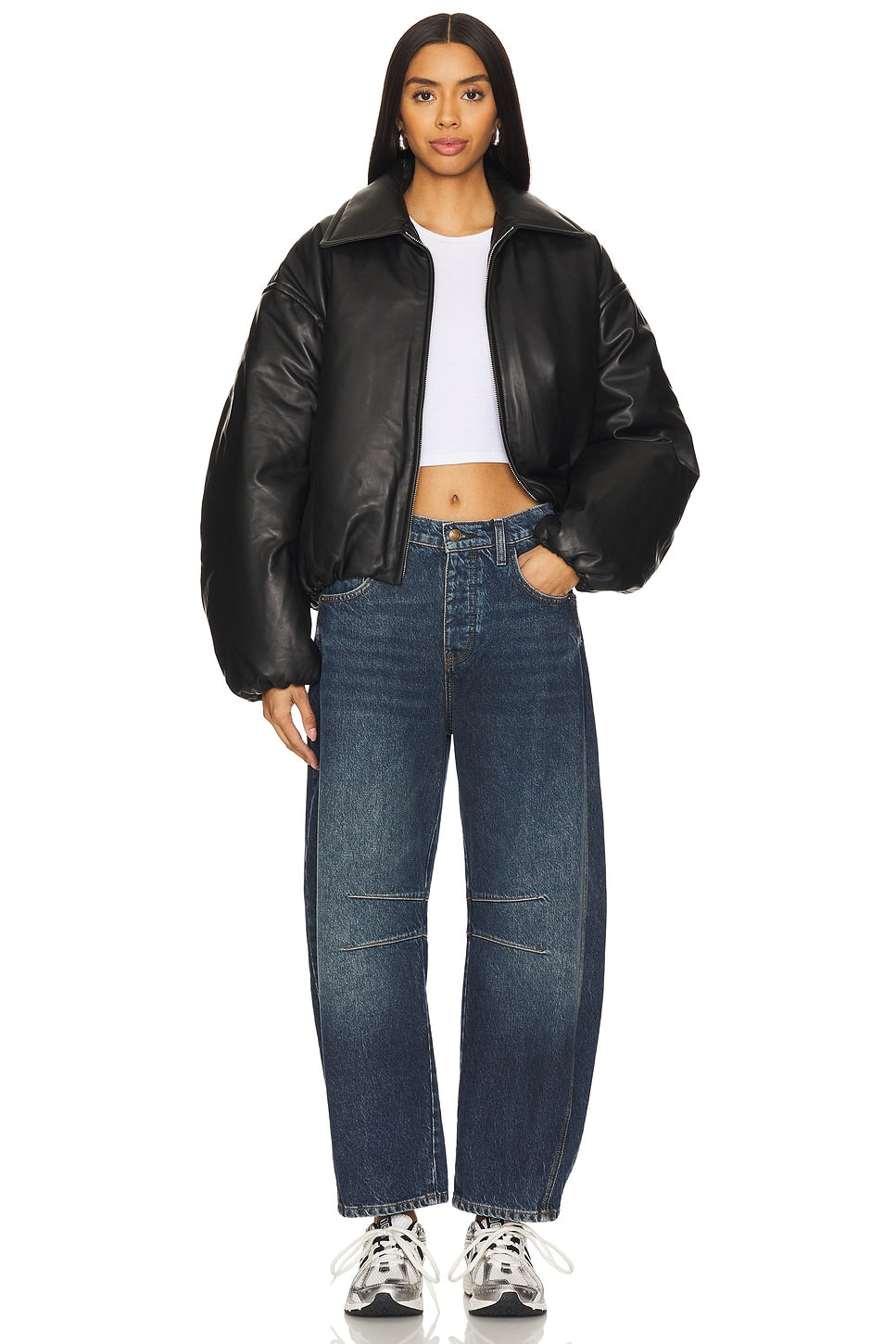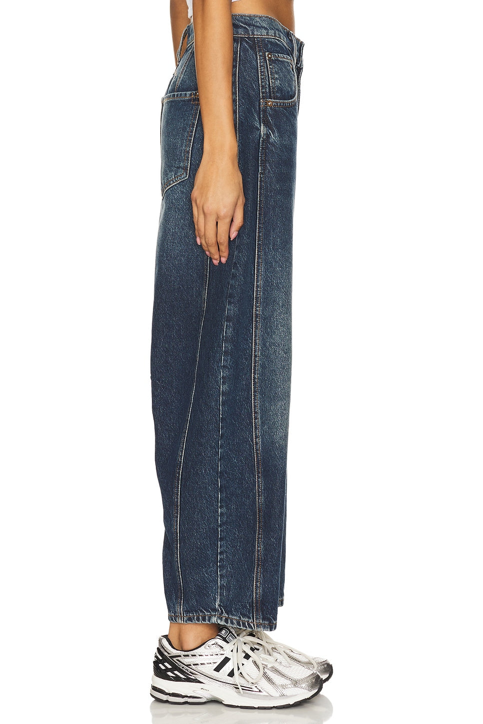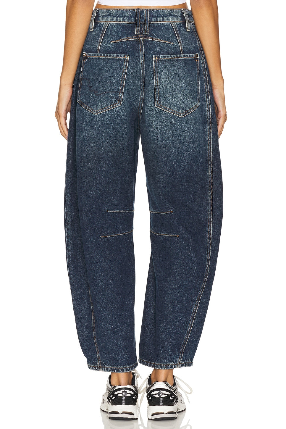 - Crafted from 57% cotton and 43% lyocell, these Free People Good Luck Mid Rise Barrel Jeans offer a perfect blend of comfort and style. Made in Turkey with a classic 5-pocket layout and button fly closure, they sport rigid denim that slims from a 24" knee to an 18" leg opening. Machine wash friendly, these jeans bring a playful twist to your wardrobe with their flattering barrel shape.