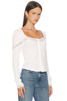 This fun cardi is crafted from 100% cotton with a blend of 88% nylon and 12% elastane for a comfy stretch. It features a playful front button closure and a flattering square neckline. Made with cozy thermal fabric and delicate lace trim, it’s perfect for layering. Proudly made in Vietnam for a unique Revolve style.