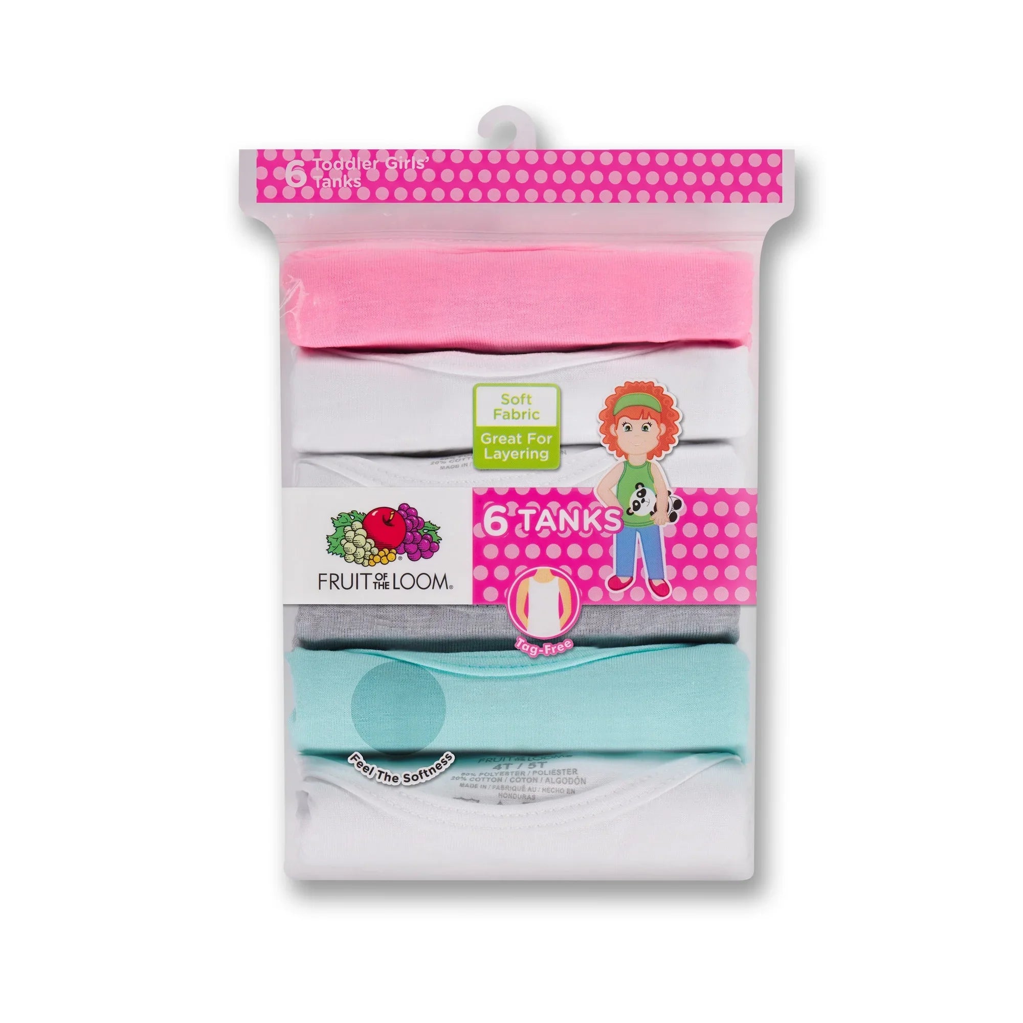 Fruit of the Loom Toddler Girl Layering Tank Top Undershirts, 6 Pack, Sizes 2T-3T