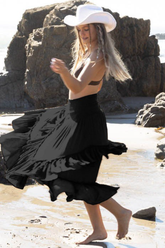 Gauze Smocking Detail Ruffle Dress/Skirt. Two way style to wear this high low smocking boho dress can easily go from a strapless tiered dress to a ruffle midi skirt, fun yet elegant and sophisticated at the same time, unlined, this flaterring smocking dress with high-low hem tiered design and ruffles decorated, makes this bohemian beach dress simple but elegant and classy, helps you show your unique charming, is an adorable summer sundresses in your wardrobe, super cute clothing for yourself/wife/girlfriend as a gift. Match: This a line tube dress high waist skirt is beautiful to wear both dresses up and casual! Perfect cottagecore dress for summer days, easy to pair with basic t shirts, crop top, sandals, high heeled shoes in spring and summer days. Occasions: Boho casual style, fabulous for party, club, dating, vacation, casual and daily wear, hawaiian beach holiday, etc, makes you more feminine and charming. 100% Rayon