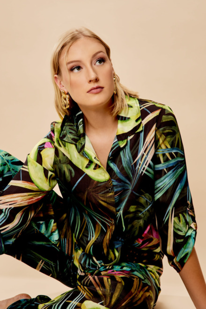 Boasting a Hawaaiian-inspired tropical print, this Frank Lyman blouse is a must for summer months! Cut from a lightweight and breathable fabric in a relaxed silhouette, this piece pairs beautifully with anything from a chic legging to a classic work pant. Add a little vibrant colour to your ensemble in this summer-worthy style!