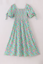Get ready to slay in this playful and vibrant green smocked mom dress! With its unique smocked design, it hugs your curves in all the right places. Perfect for any casual or dressy occasion, this dress will make you stand out and feel confident. Get it now and become a fashionista mom (in a good way, of course!)