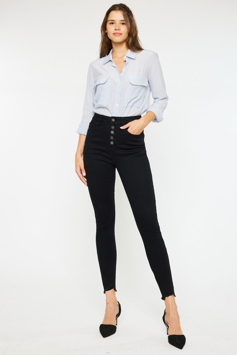 High Rise Button Fly Super Skinny Jeans. Young and contemporary. That's what denim is all about. Denim is a versatile and reliable fabric. A timeless testament to classic everyday fashion, every young woman will be proud to wear. Wash inside out. Machine wash in cold water. Wash with like colors. Do not bleach. Tumble dry low. Low iron if needed.