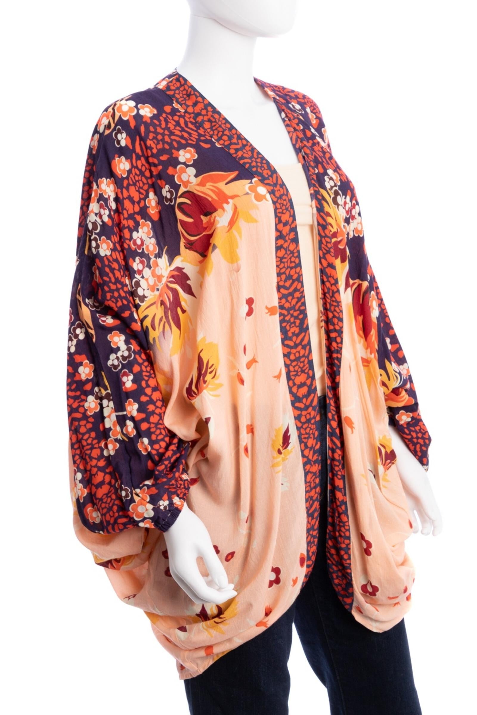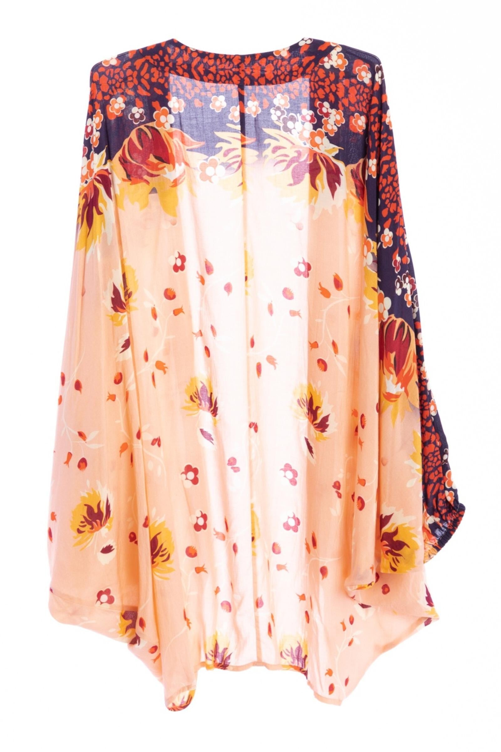 Juliana Abstract Floral Kimono. Material : 60'S MODAL. Centre Front Neck to Hem 34 I/2. Centre Back Neck to Hem 34. Hem Width Straight Back 19 1/2