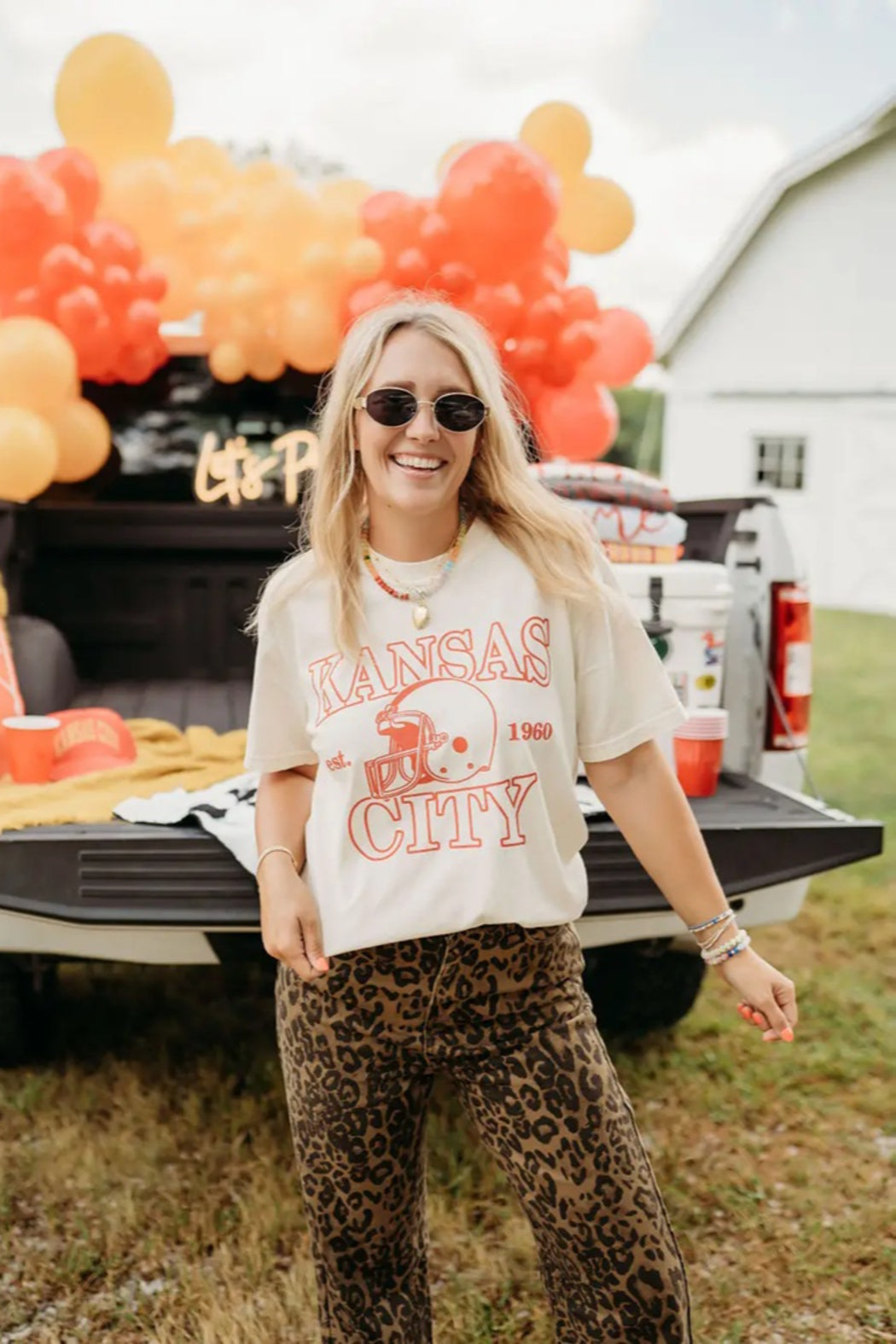 A relaxed graphic tee printed with a vintage-inspired Kansas City football motif, the Kansas City x 1960 Football Tee is a casual, easygoing staple. Cut in a classic crewneck silhouette with short sleeves and a roomy fit, it layers effortlessly for game days or weekend outings. This 100% cotton tee pairs well with jeans or leggings for a laid-back look.
