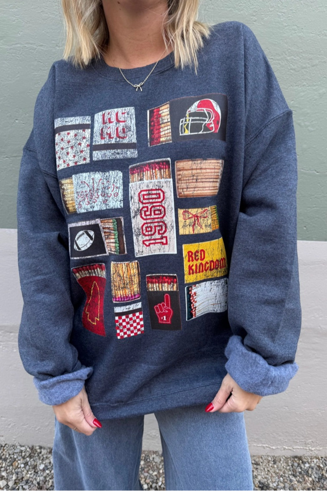 This darling KC Matchbox Graphic Sweatshirt is perfect for some laid-back team spirit in between all-out gameday outfits. Made in a soft, fleece-backed knit with long sleeves and a roomy, slightly oversized silhouette. It’s perfect for cozying up at home or casual weekends while adding a playful, retro touch to layered looks.